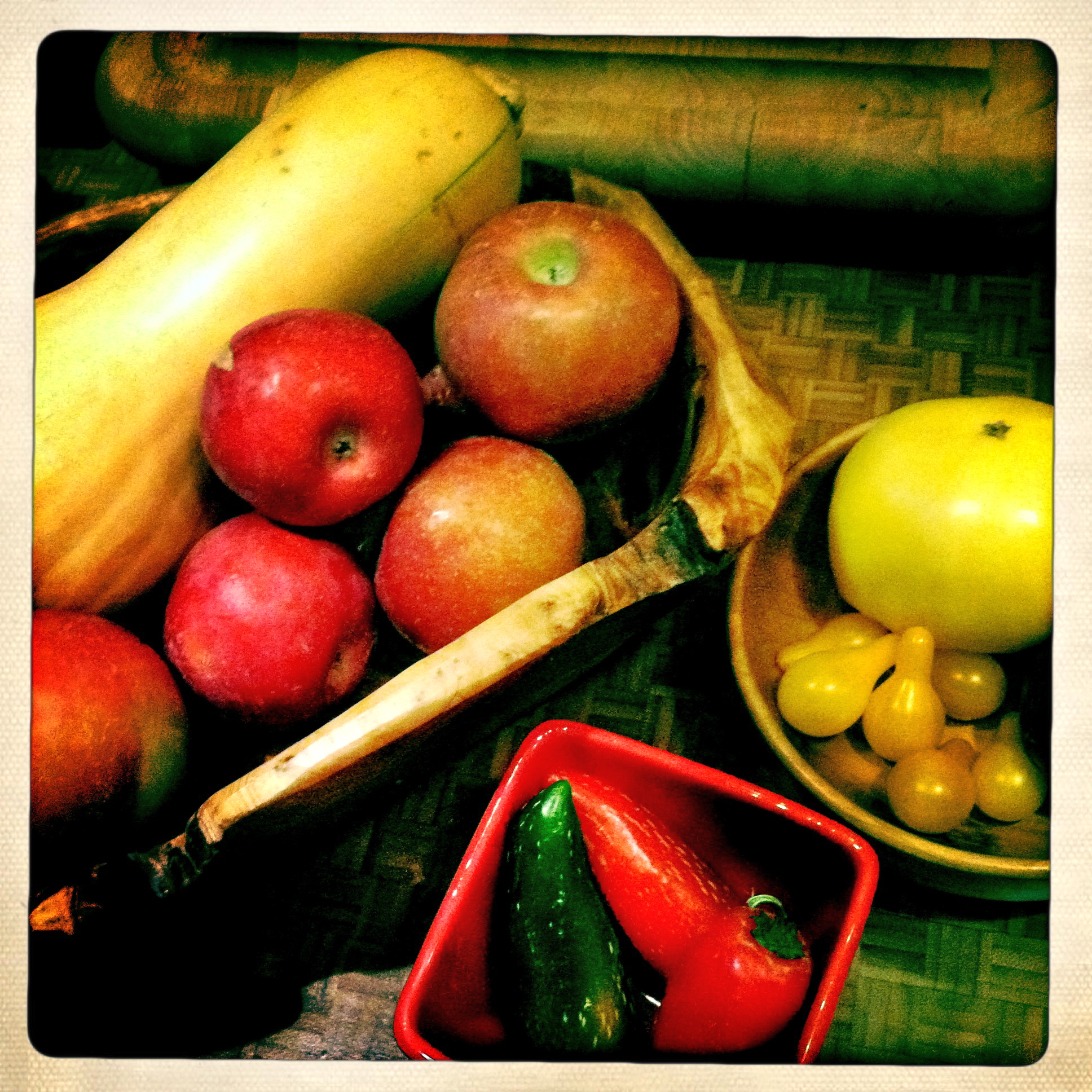 The weather was really just about as good as it gets. Splitter blue sky, warm sunshine with a hint of chill, trees putting on a show. Ideal for playing ball on the new grass with Cholula, enjoying a farm-fresh salad for lunch, and hunting for a few pumpkins!