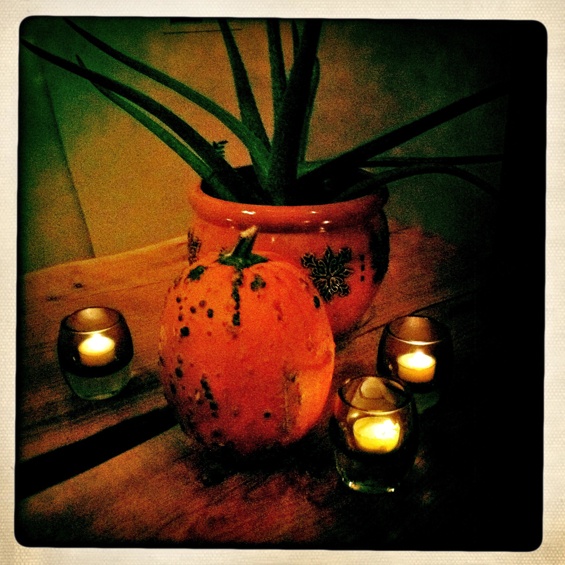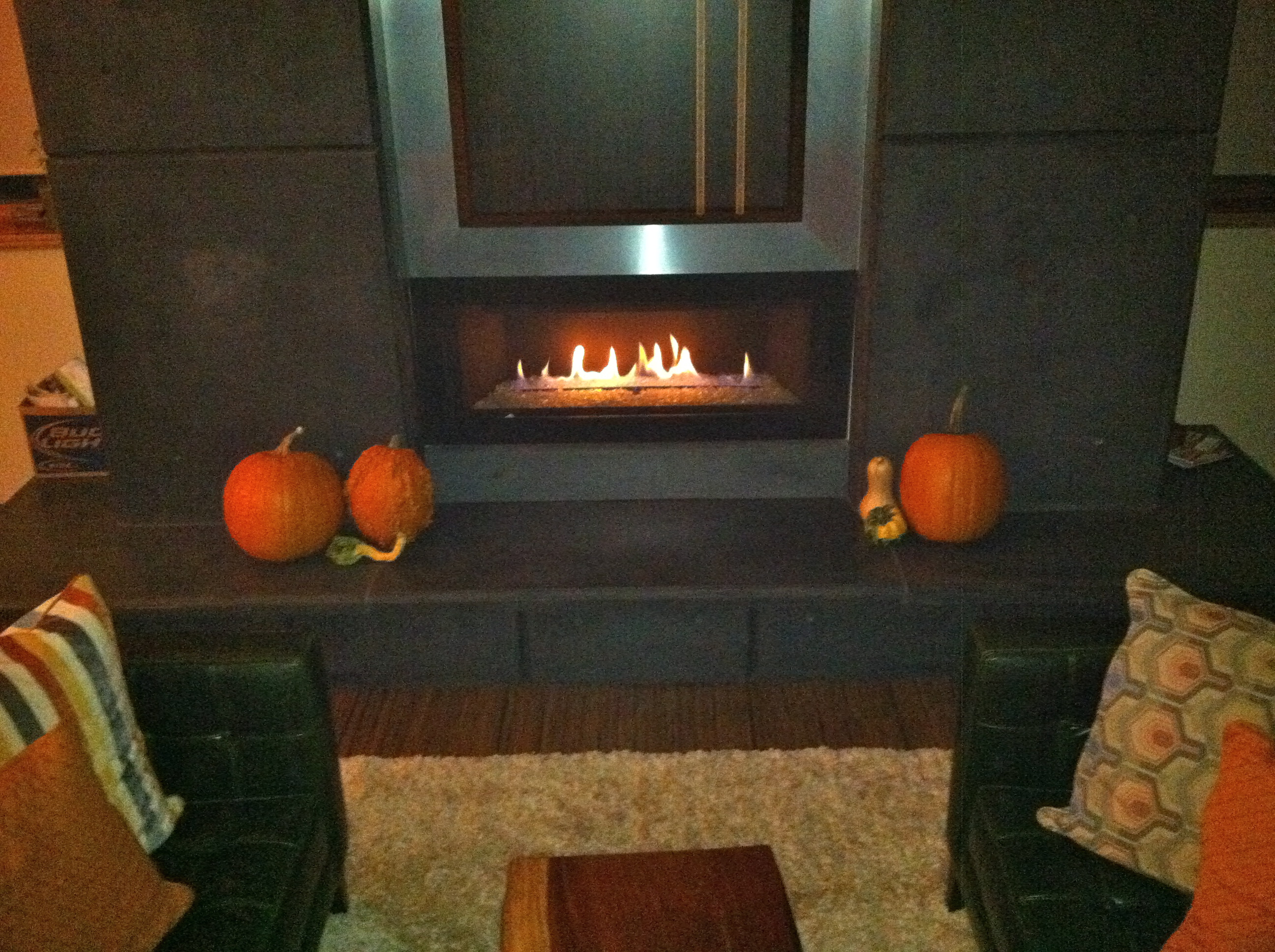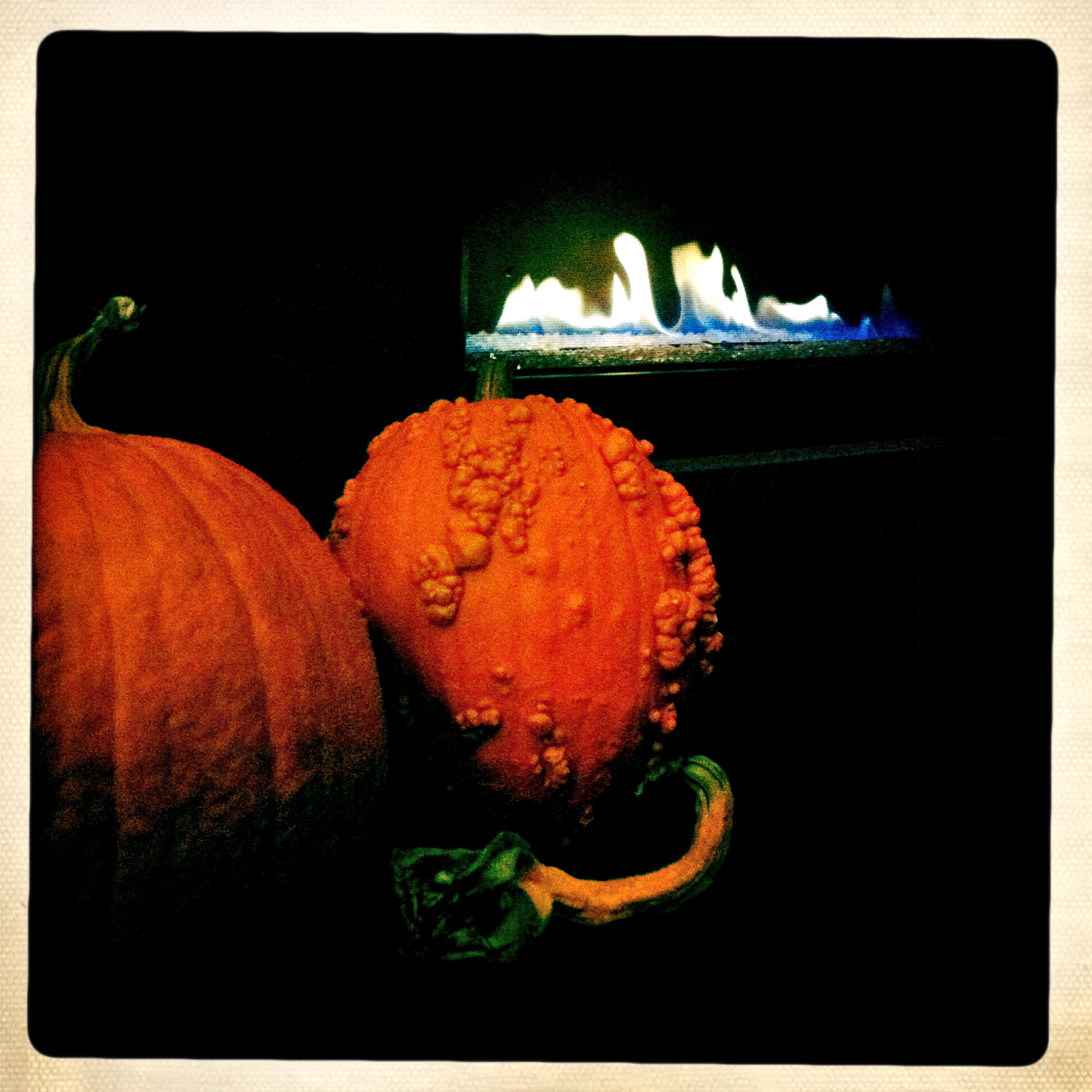 There’s an uber-warty pumpkin on the left side of the fireplace. He’s my very favorite. And yes, it’s cold enough to have the fireplace going- in the 20s or below recently at night!