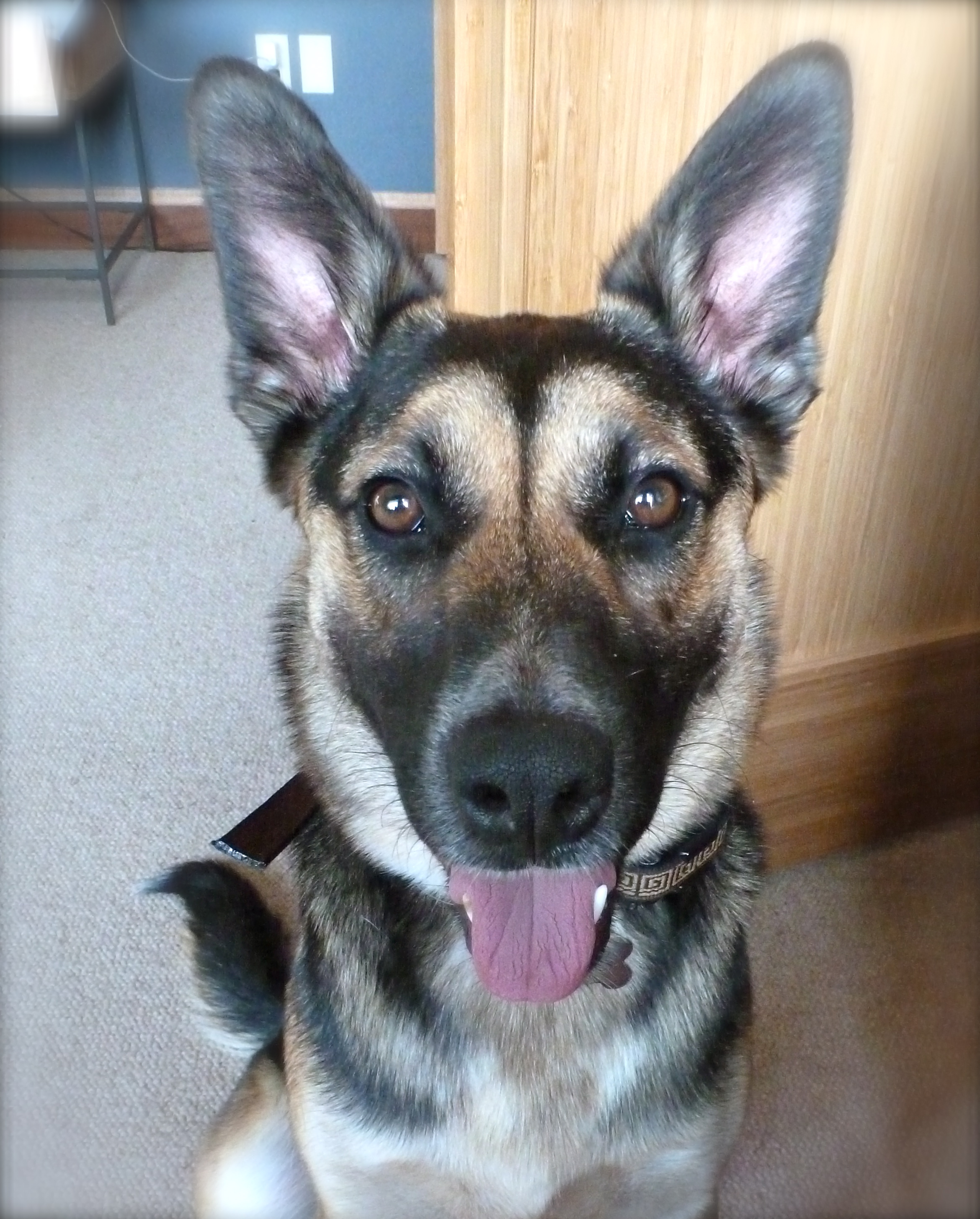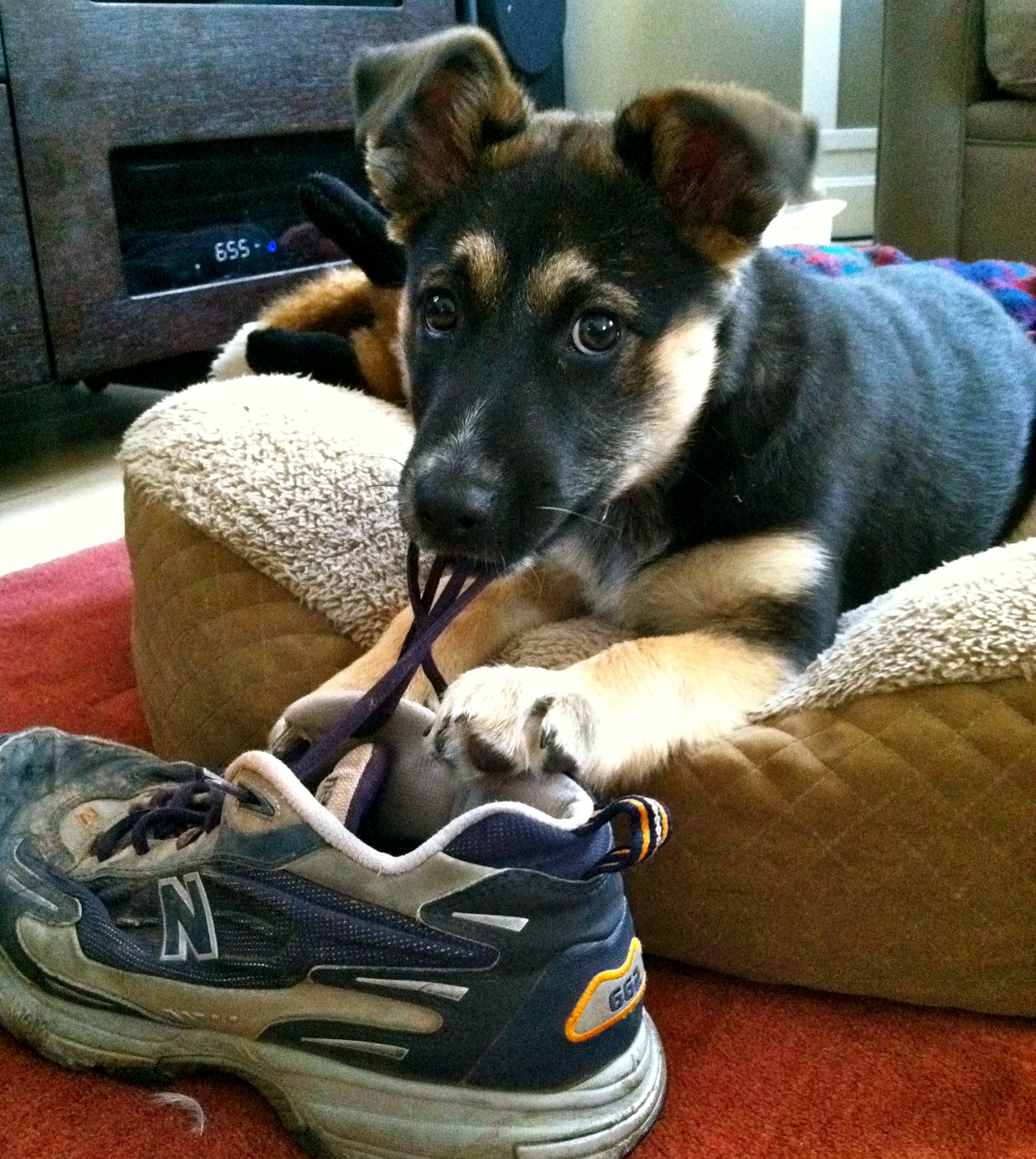 365 days ago, a female German Shepard had a litter of 7 puppies. Her owner was less than thrilled. She’d planned on purebred German Shepard puppies to sell, but the neighbor’s male Chocolate Lab had (ahem) other ideas. By the time we met Cholula, 8 weeks later, there were just two puppies left. I’ve said before that if the woman had brought along Cholula’s brother when we met, John and I would be celebrating TWO doggie birthdays today. I mean, LOOK.