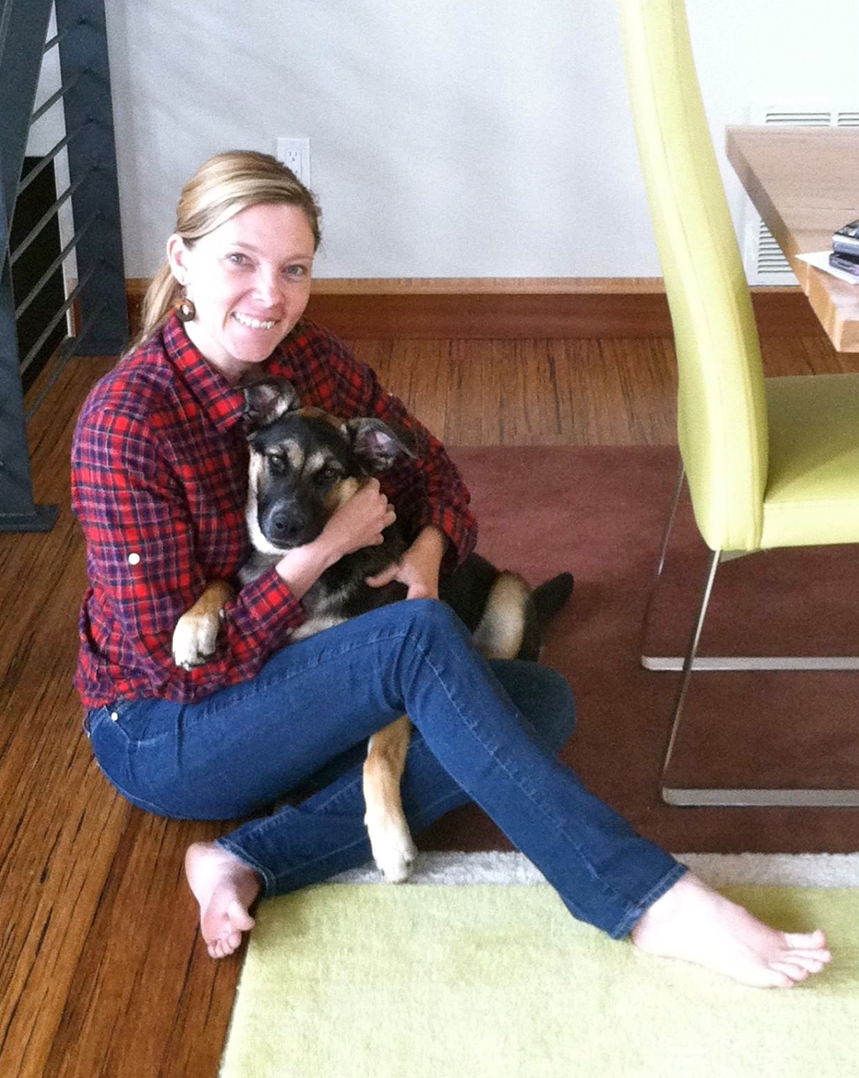 German Shepard and Chocolate Lab mixed into one puppy is awesome. Cholula is that perfect combination of smart, loyal, sweet, and loving. We never met her parents, so we didn’t know how big she would get. She’s the perfect size, kind of a mini-Shepard. I hardly remember the days when she was teensie-weensie!
