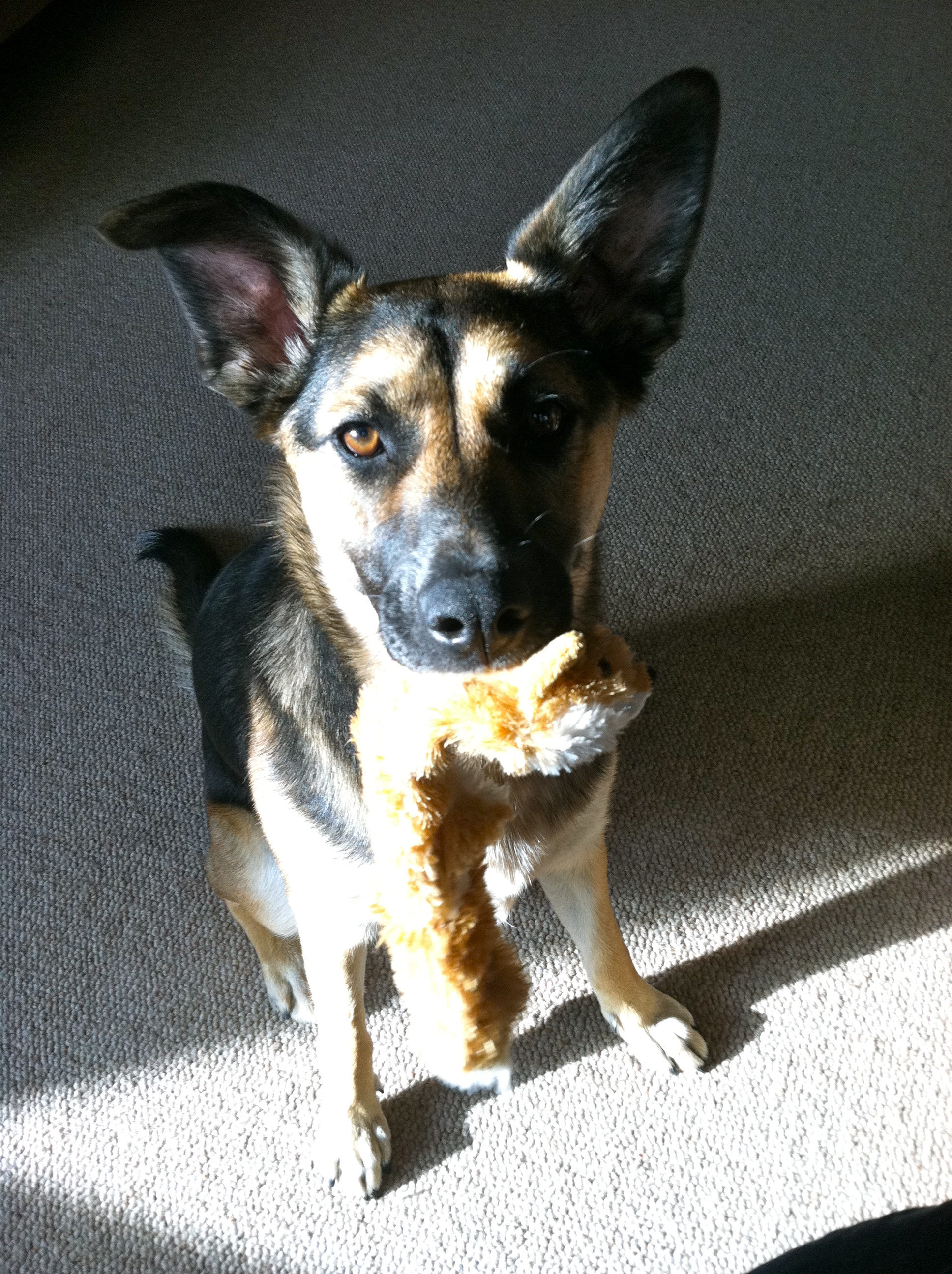 Yesterday, we watched some videos we took of her as a tiny fluffball and essentially turned into sniffly piles of “Awwww!” Her first bath. Her first time off leash at the park. Mealtime (hilarious with a ravenous baby puppy!). If someone had walked up to us, holding a puppy with outstretched arms, we would FOR SURE have snatched up the little munchkin and moved right back into Puppy Town. (Also known as No Sleep Town, Hide Your Shoes Town, and Might As Well Re-carpet the Living Room Town.)