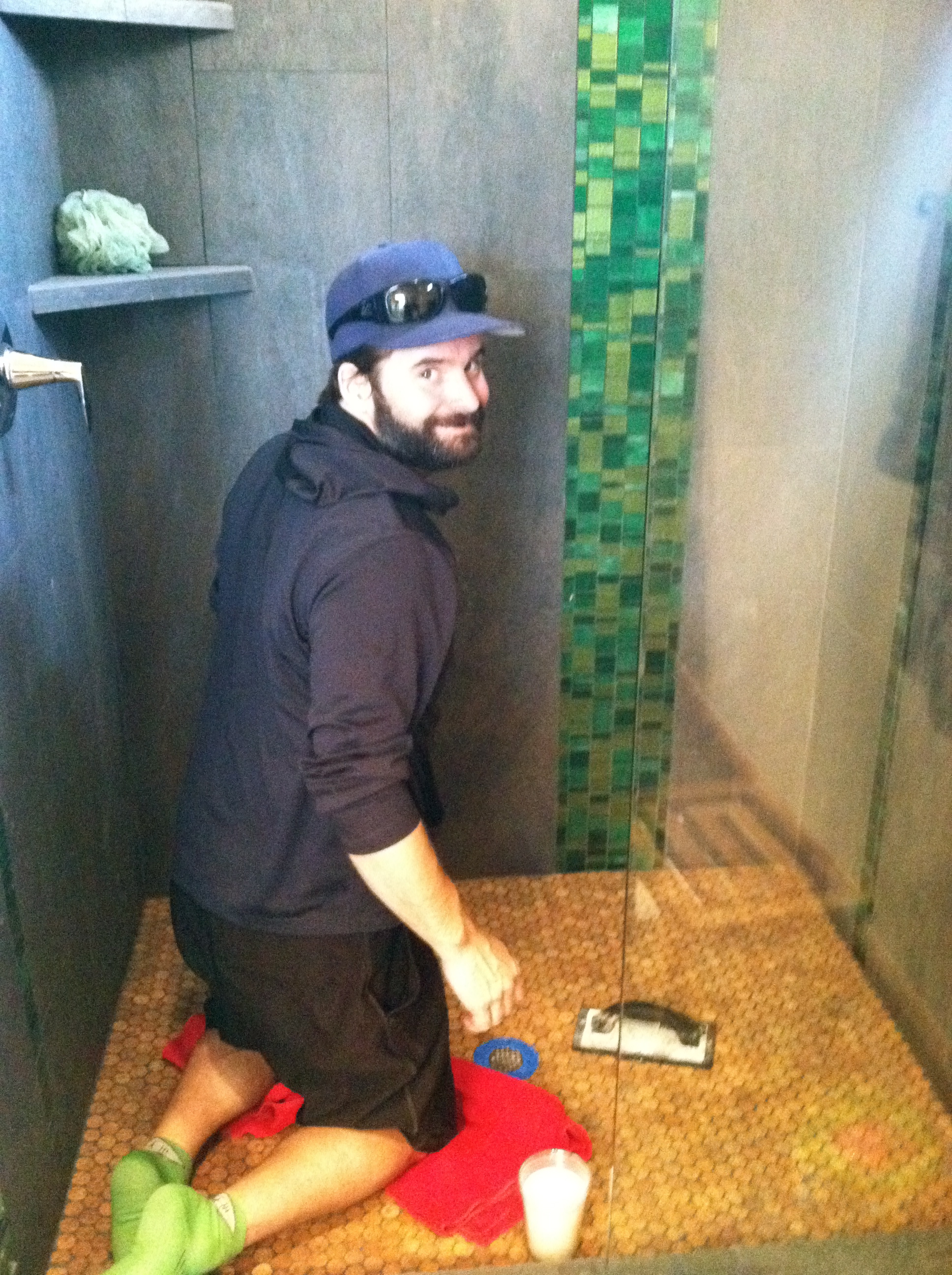 That shower IS awesome. Except that it never was sealed properly so the cork had to be redone in the floor! Perfect timing! The pork wraps were super yum- might have one for lunch.