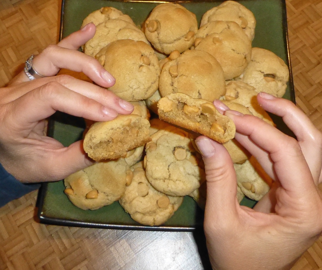 Pink pasta and cookies with Crisco.