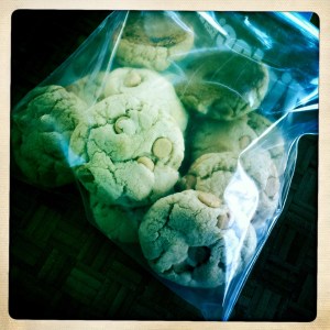 Pink pasta and cookies with Crisco.