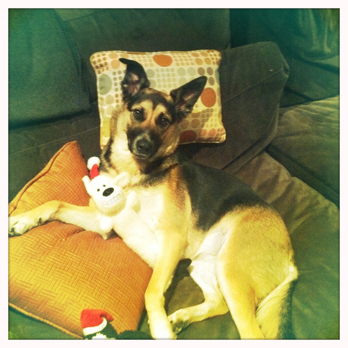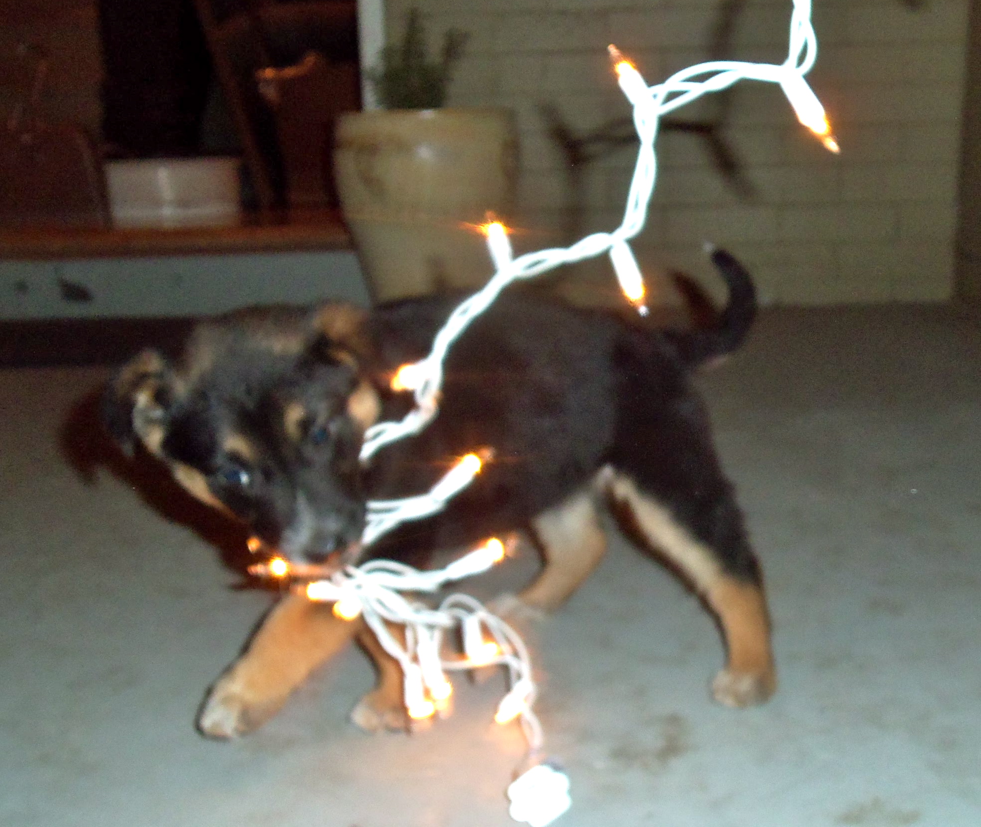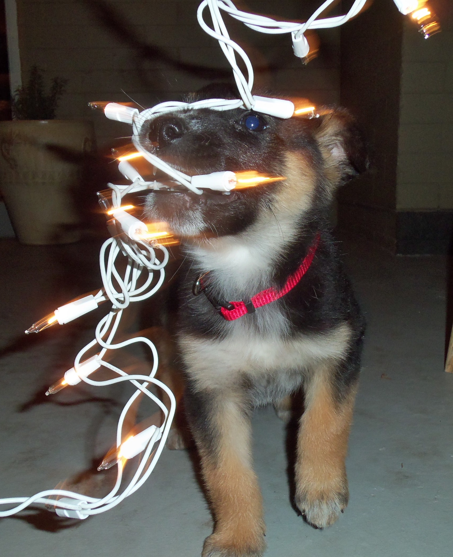 I love the snowflakes- they even sparkle! Cholula doesn’t seem to be digging the strands of light this year- unlike last year. Here’s a few shots from a year ago- look how teensy!
