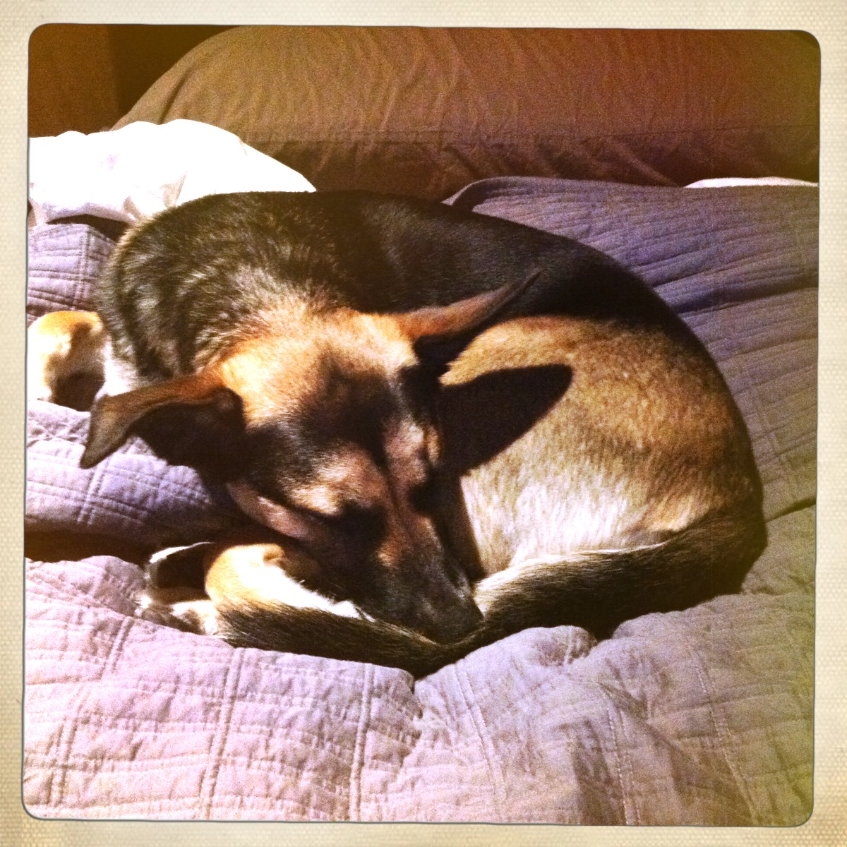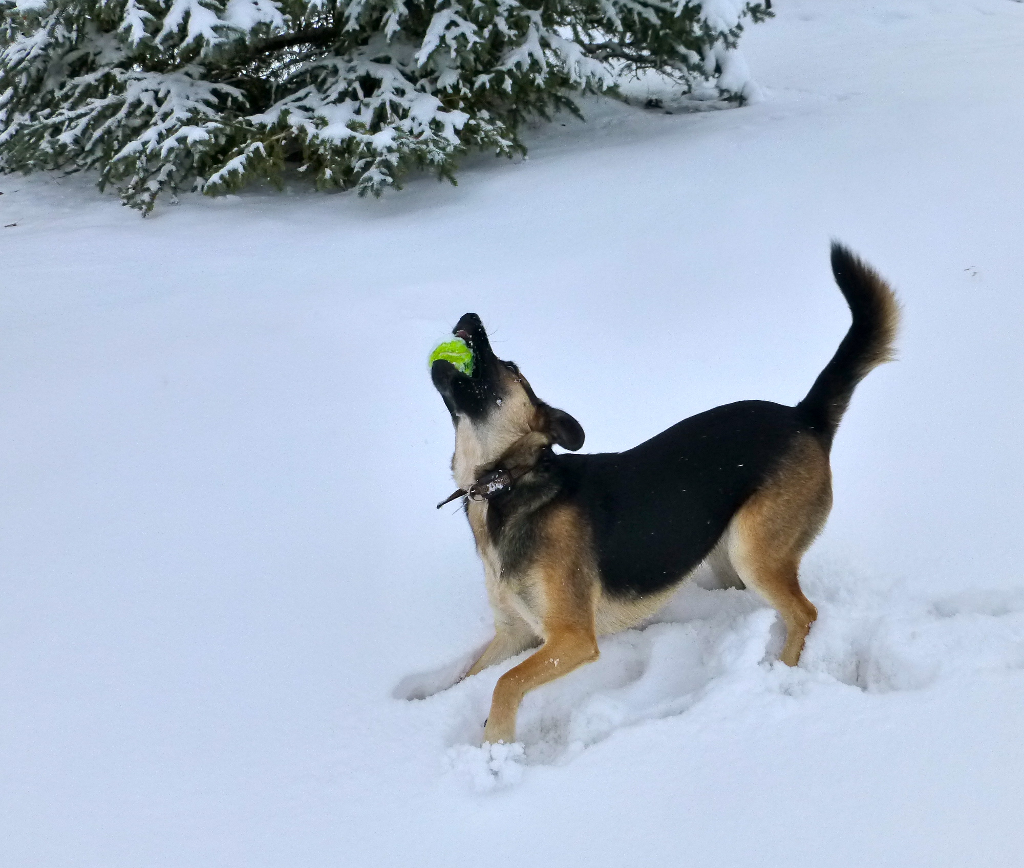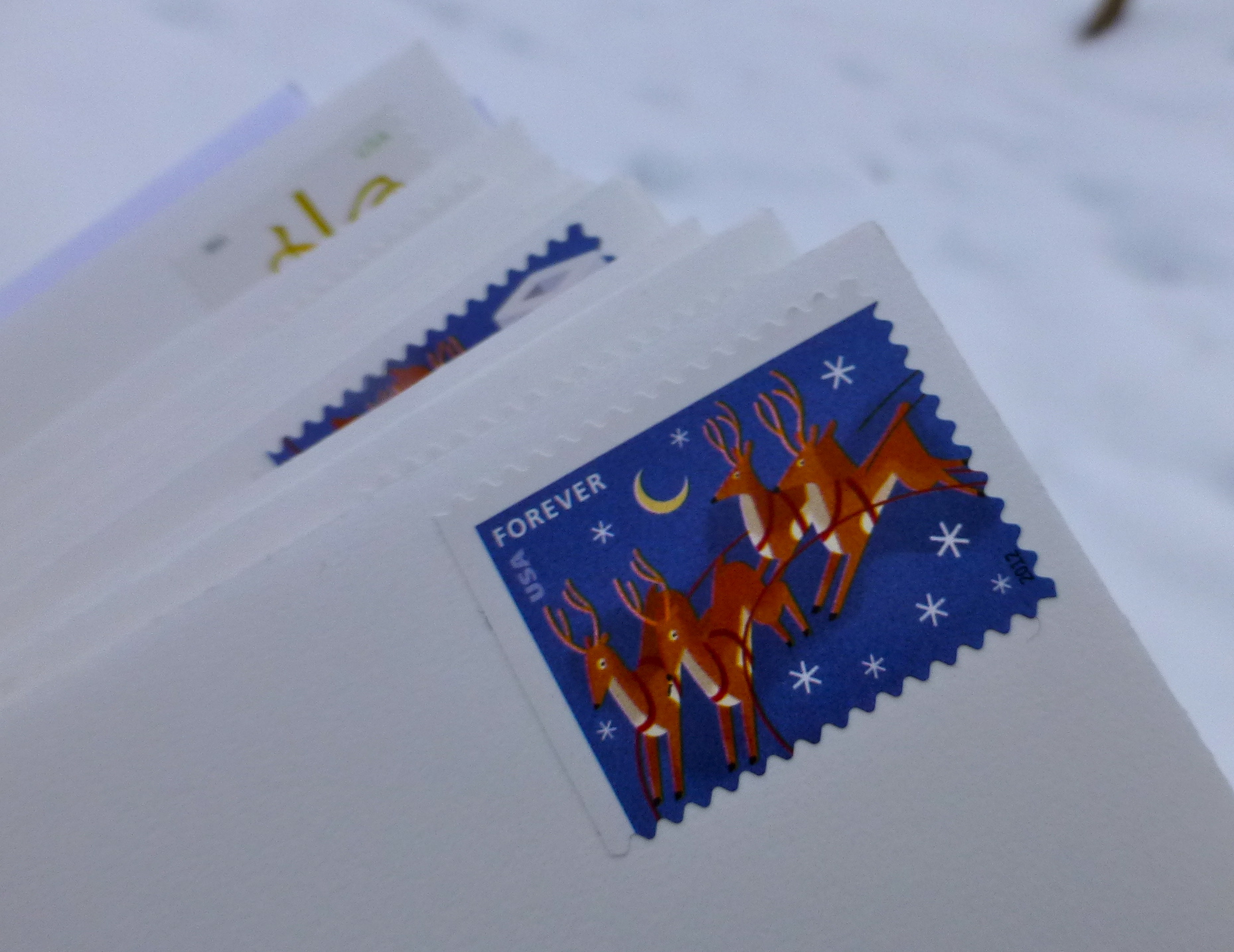 Basically perfect for lingering in bed for awhile and in slippers for even longer. For bundling up in furry boots and strolling to the mailboxes to deposit words of holiday love and cheer to friends and family. For watching Cholula romp in fluffy frozen bliss in the snow, feeling a laugh bubble up from within at the sight of her doggy-smiles.