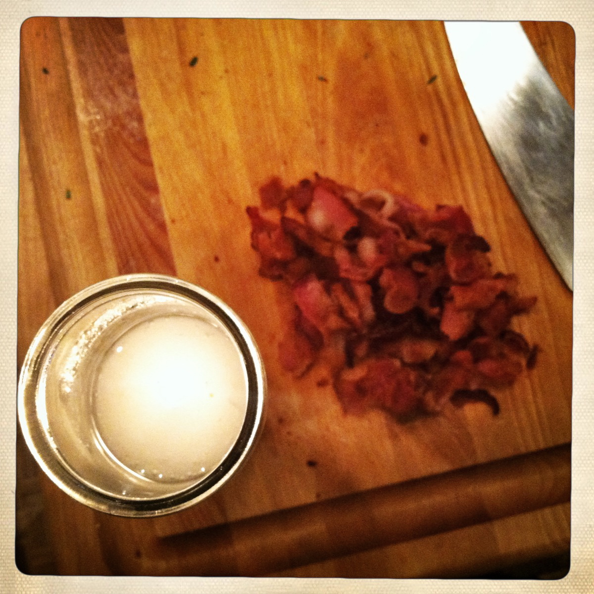 The ingredients are pretty basic. Even in landlocked Park City, Utah, you can always find canned clams. As you know, a lot of my favorite recipes start with BACON. We’re going to need those tasty drippings, so go ahead and get some going in a soup pot.