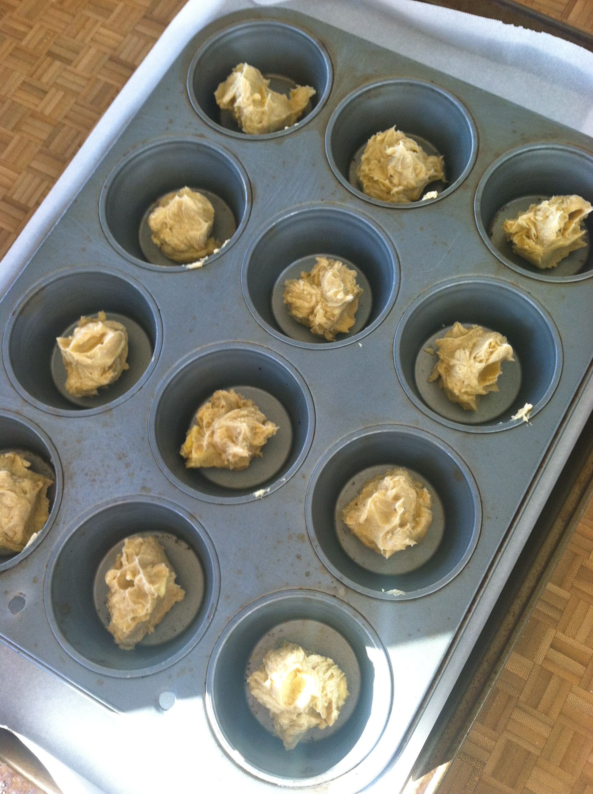 Preheat oven to 400 degrees. Place 12-cup standard muffin tin on a sheet pan lined with parchment paper.