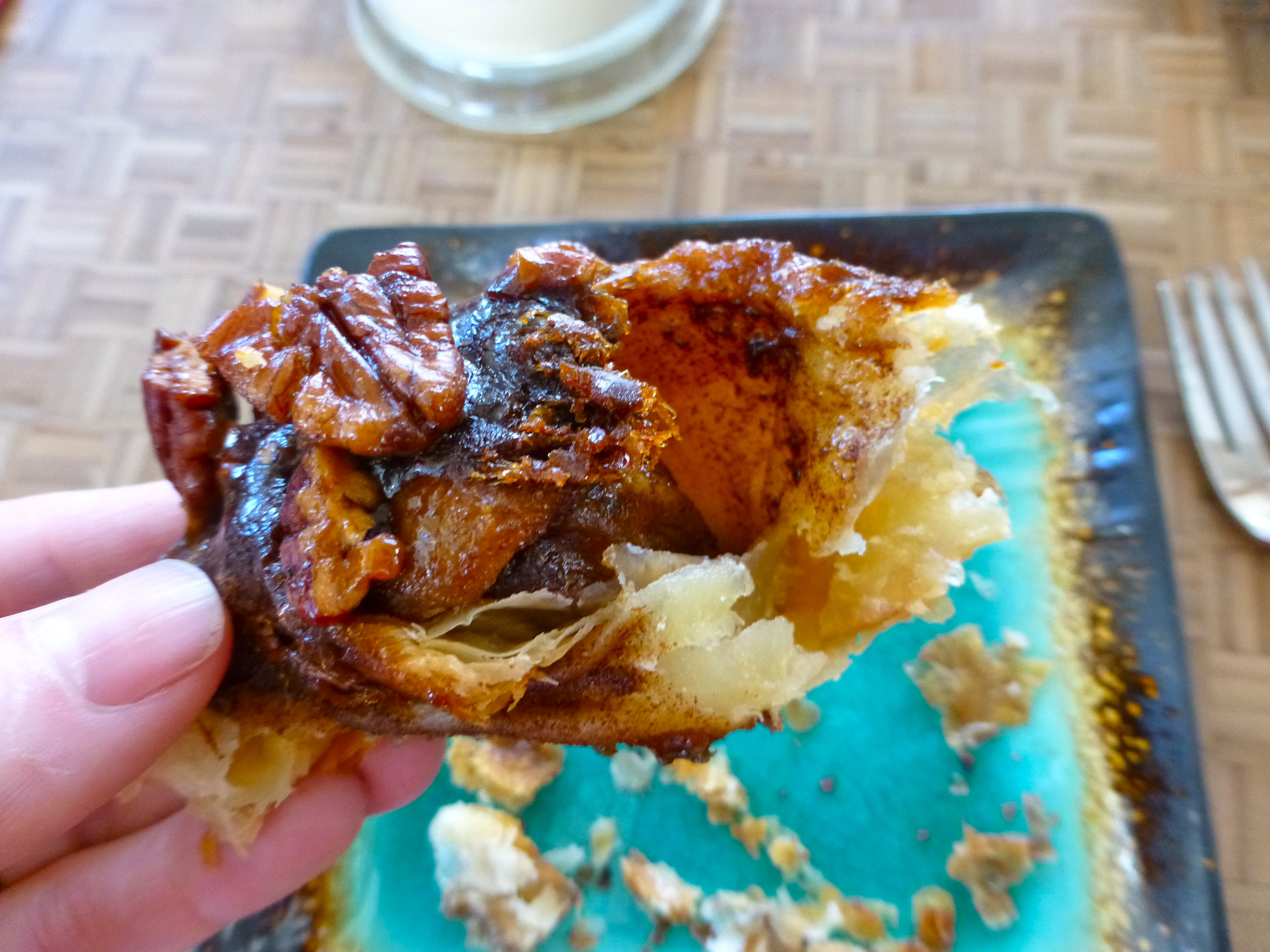 And guess what we learned? On Christmas morning, after a chilly ski with a rein-dog, these warm sticky buns are perfection when served with eggnog. Flaky, sweet, sticky, and cinnamon-y. Delish.