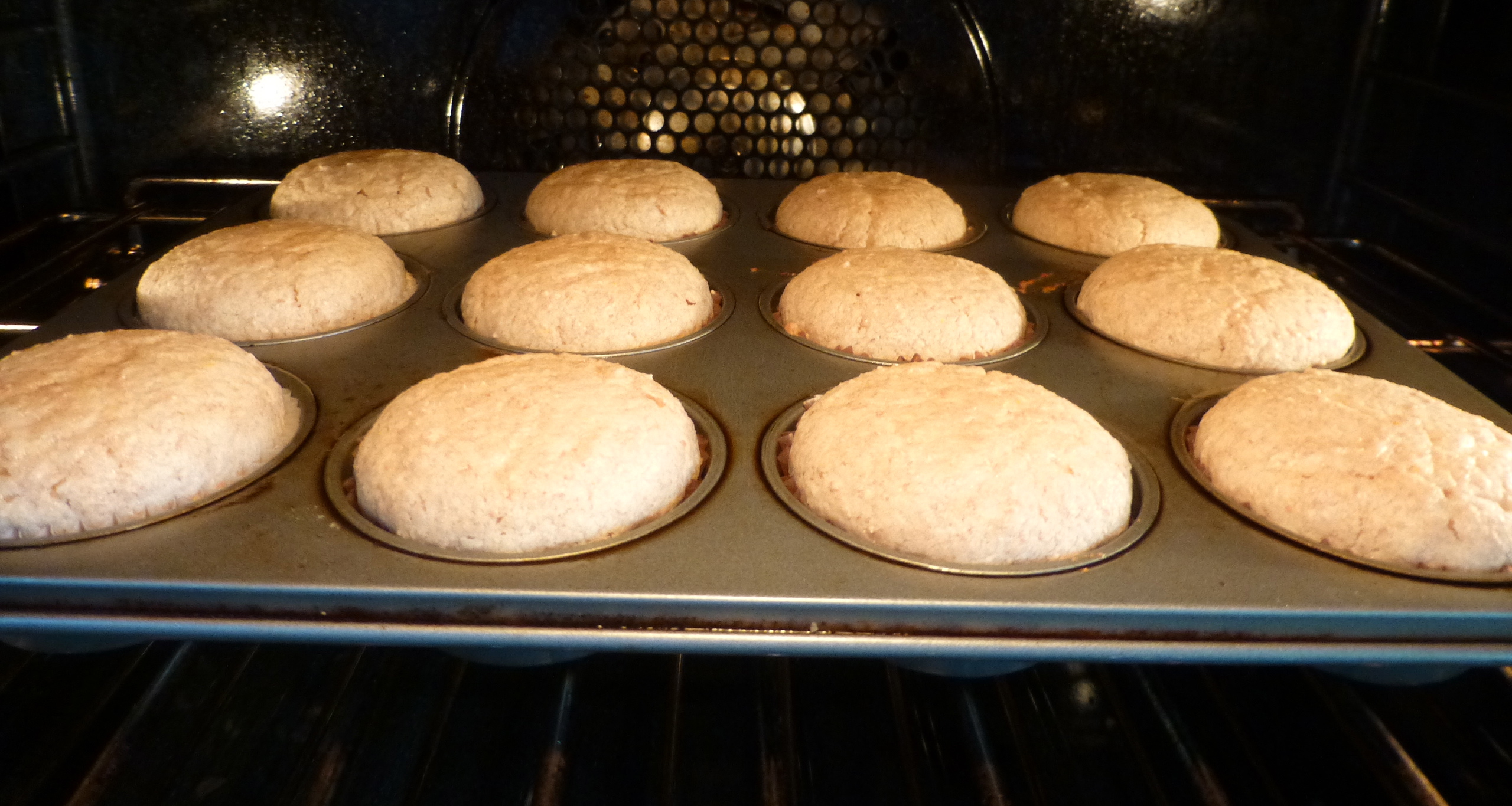 Divide batter into muffin cups, filling ¾ full. Bake about 18 minutes or until a toothpick comes out clean. Let cool for a few minutes in the pan, then transfer to a cooling rack placed over a baking sheet.