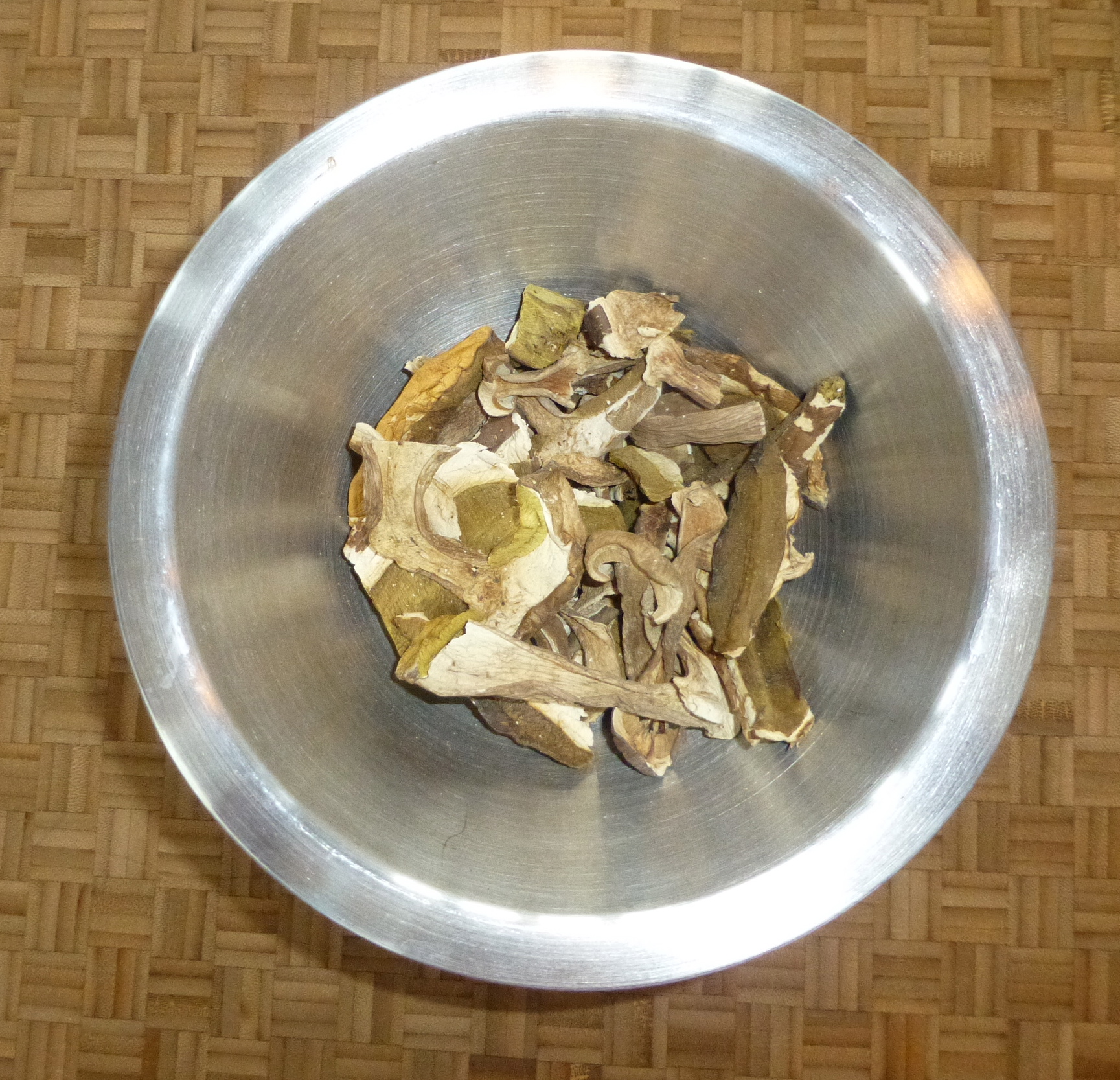 Drain the mushrooms, reserving the liquid. Chop the mushrooms and add them and the liquid to the soup. Simmer for 1 hour and 30 minutes.