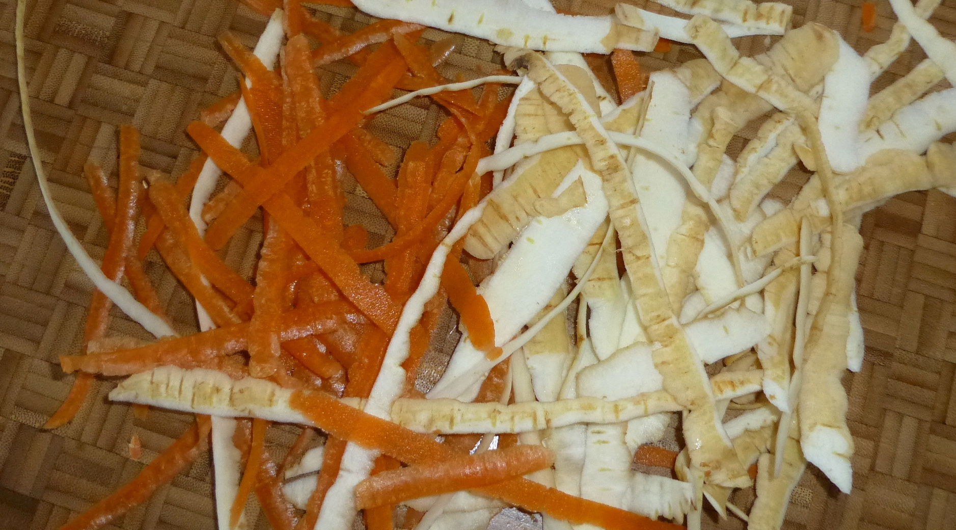 A quick glance at the ingredients revealed that I’d be using dried mushrooms and parsnips, neither of which I’d cooked with before. A culinary adventure! I was surprised at how easy it was to find a variety of dried mushrooms at my local grocery store. I was also surprised at how difficult it was to find parsnips- John went to three stores before bringing home a couple of these pale carrot look-alikes!