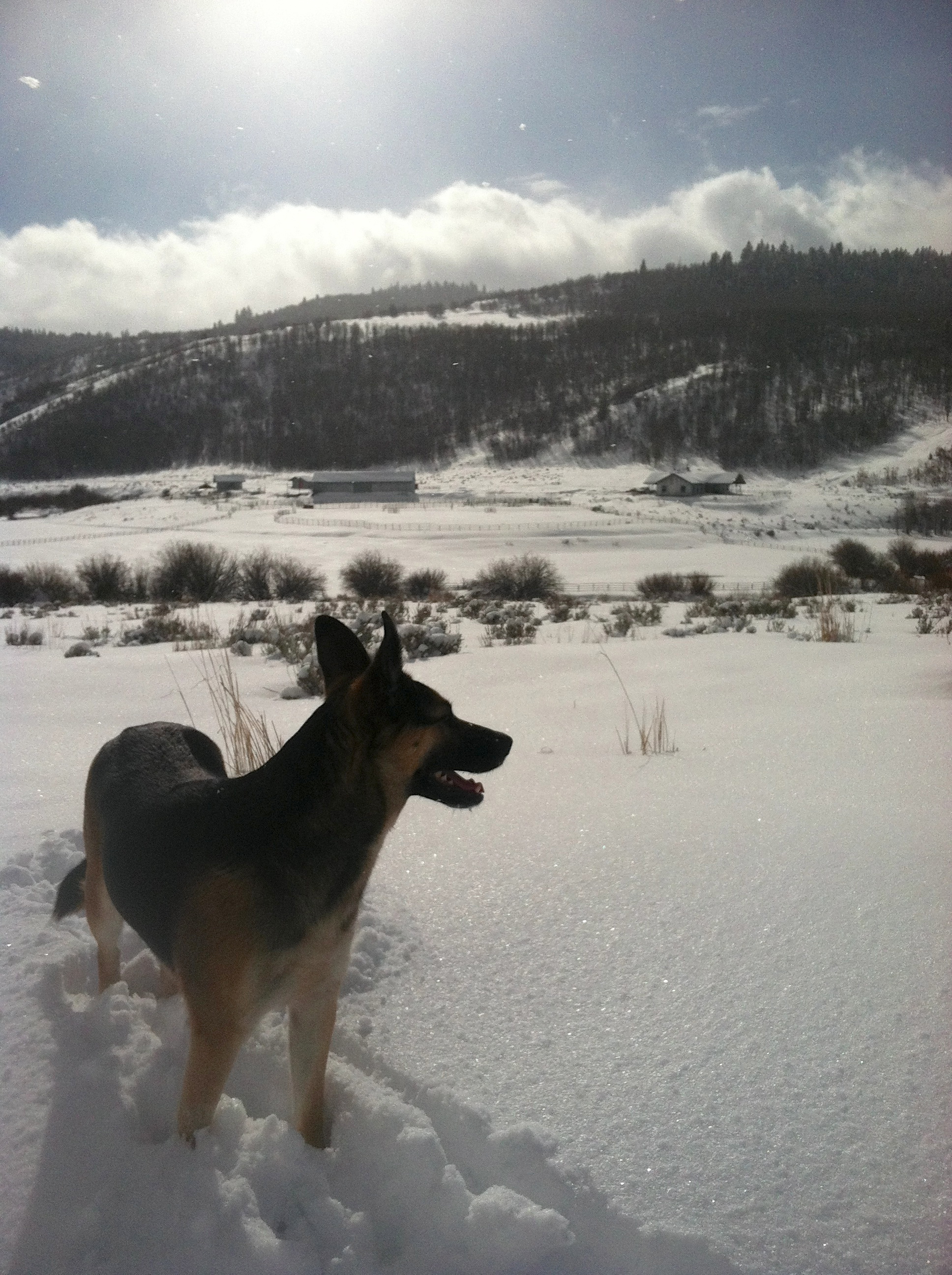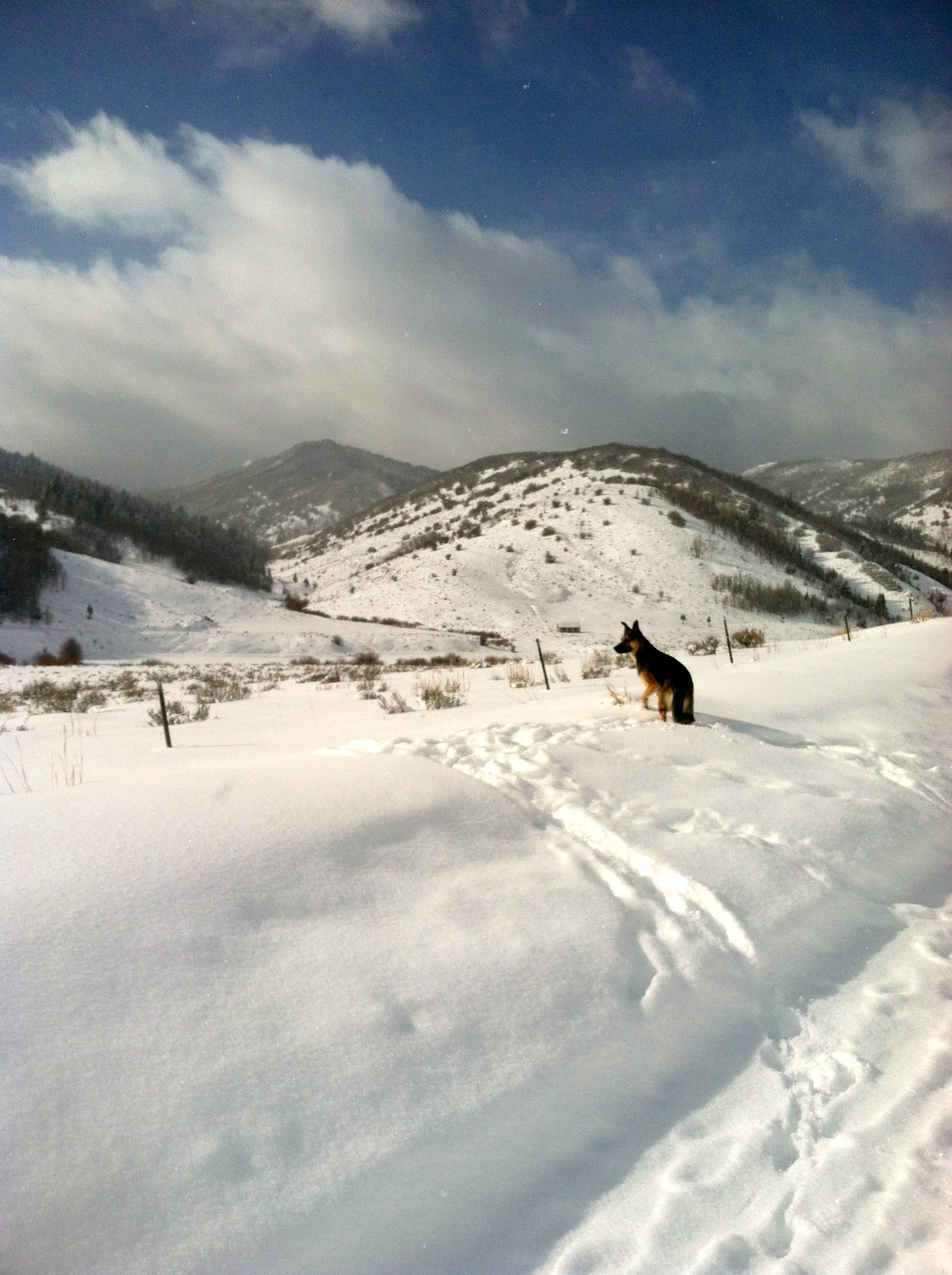 Within minutes of hitting “publish” on that post, I was bundling up in my cozy snow gear for a date with Jack Frost. Cholula graciously agreed to chaperone. We are lucky to live adjacent to miles of open space, so we didn’t have to go far to find the perfect spot for a snow hike. (You may remember another visit a few months ago, when I attempted to go running and Cholula met some rather large cows.)