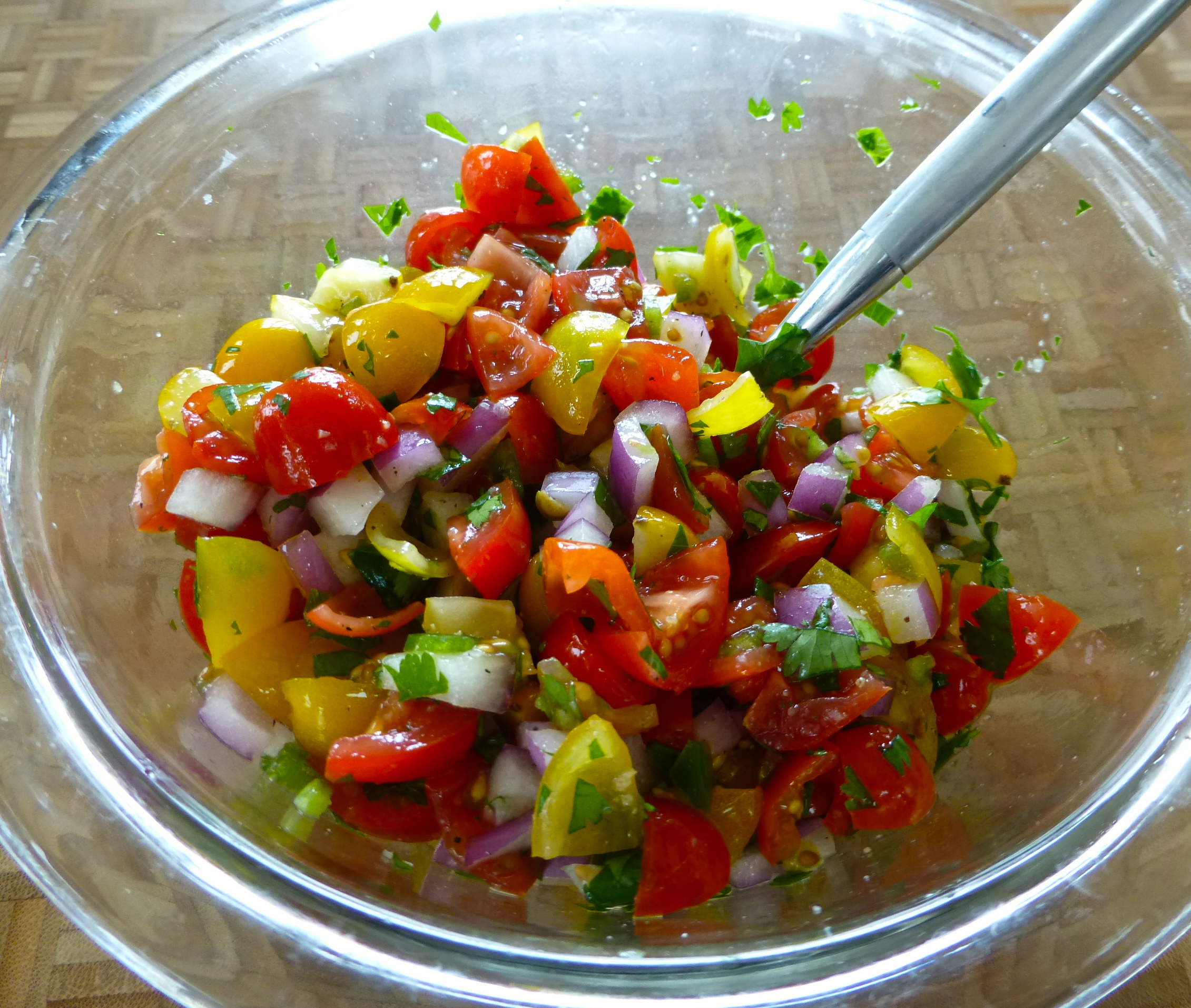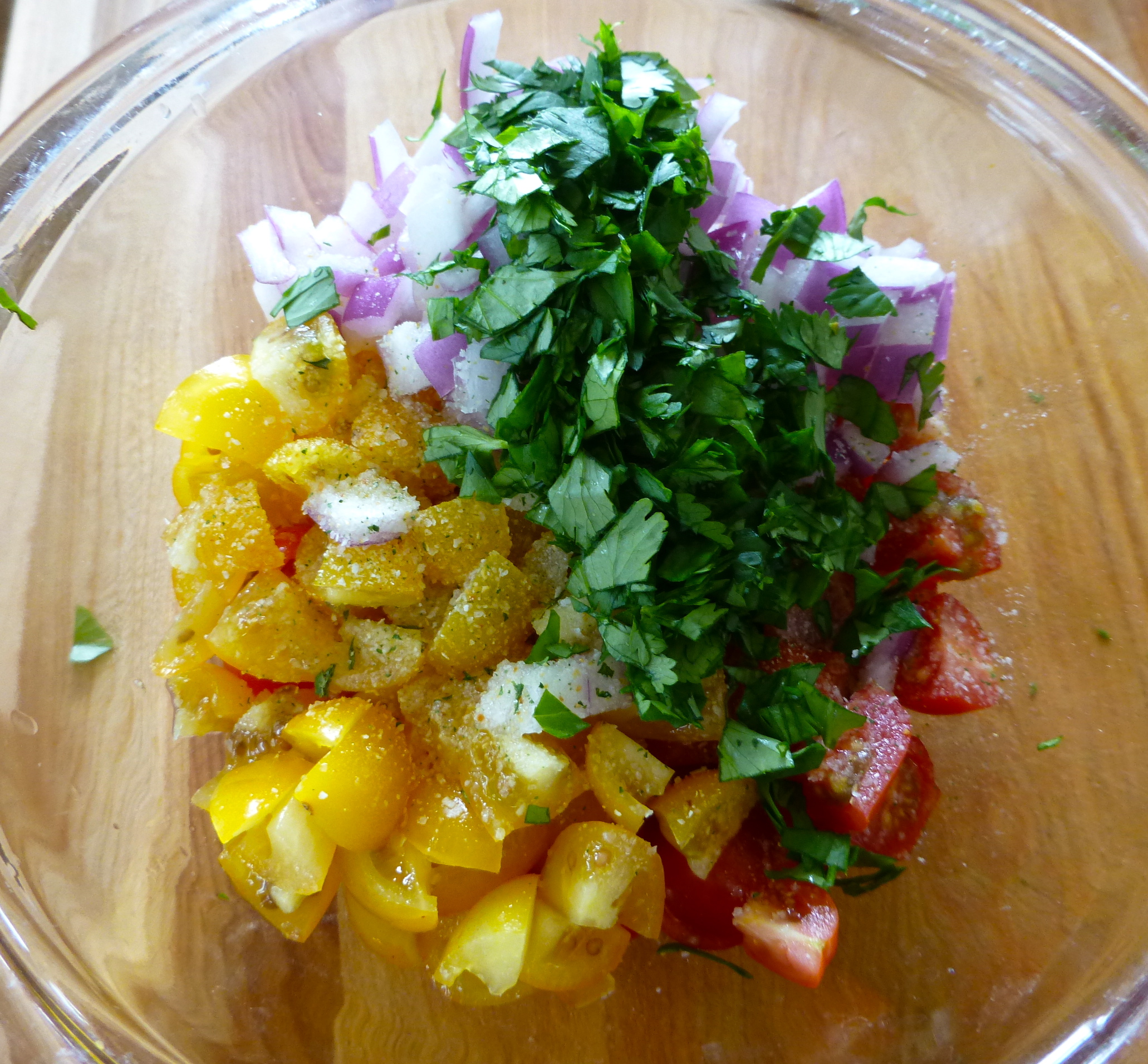 I made some fresh pico de gallo mid-day, so it would have time to sit in the fridge to get extra delicious. I chopped up some tomato, red onion, cilantro, and a bit of jalapeno. Pico always needs more salt and more lime than I think it will, so I was generous this time. Gorgeous!