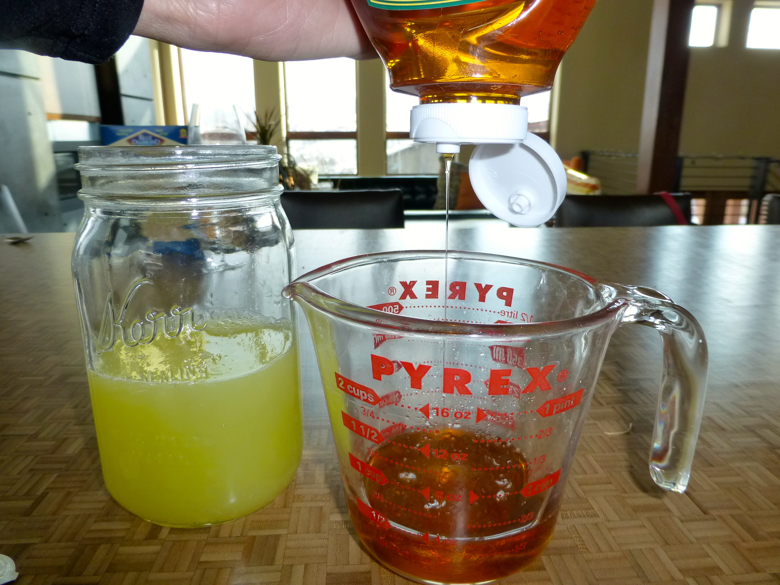 Equal parts lemon/lime juice and agave sat in the fridge, waiting to mingle with ice, tequila, and a lime wedge later. Fun! (It was mostly an excuse to visit my juicer.)