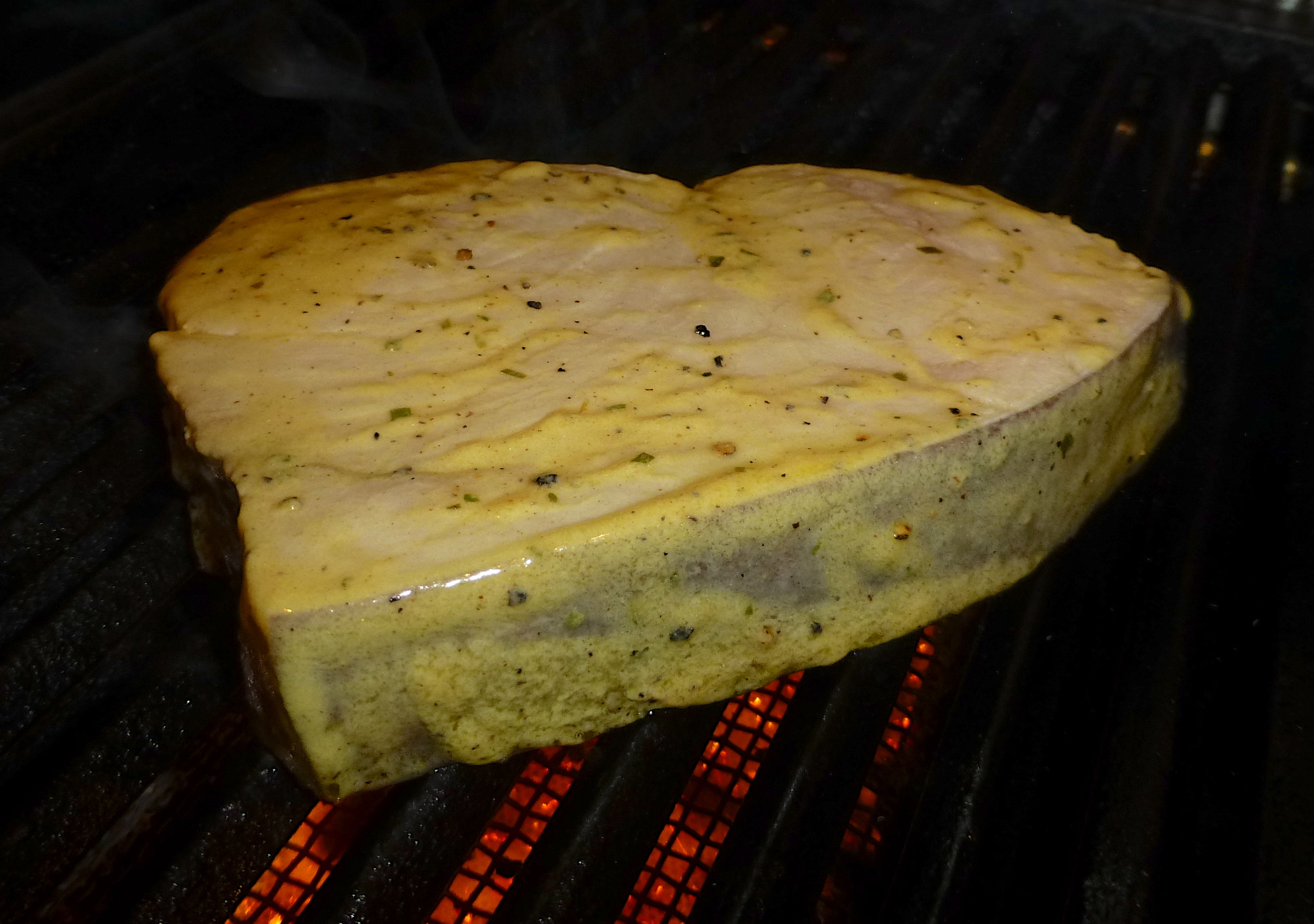 It’s a marinade that John’s mother, Isabelle, loved to make. Last night, with a thick swordfish steak that needed dressing up, he pulled out the ingredients and told me the Peep’s story.