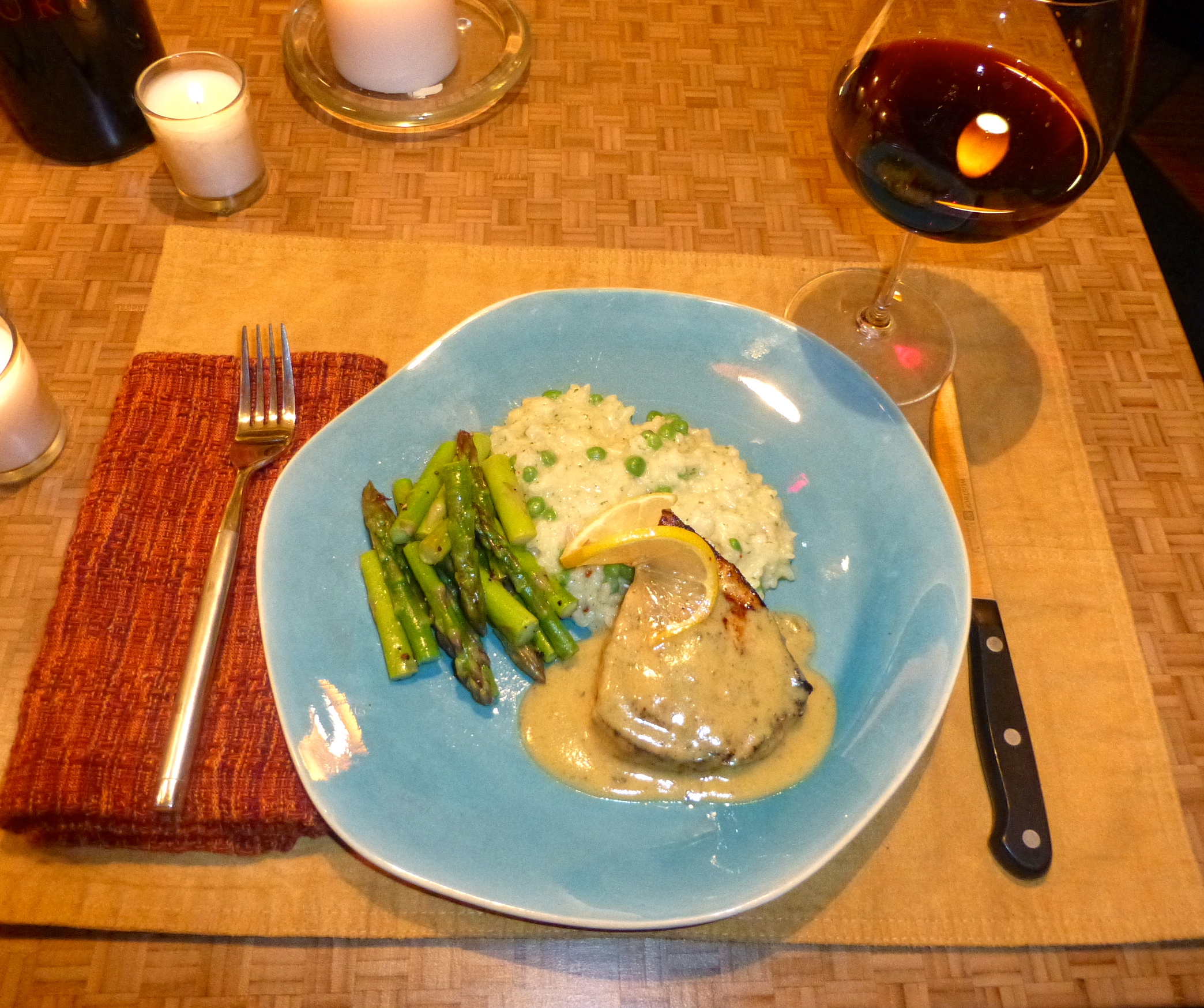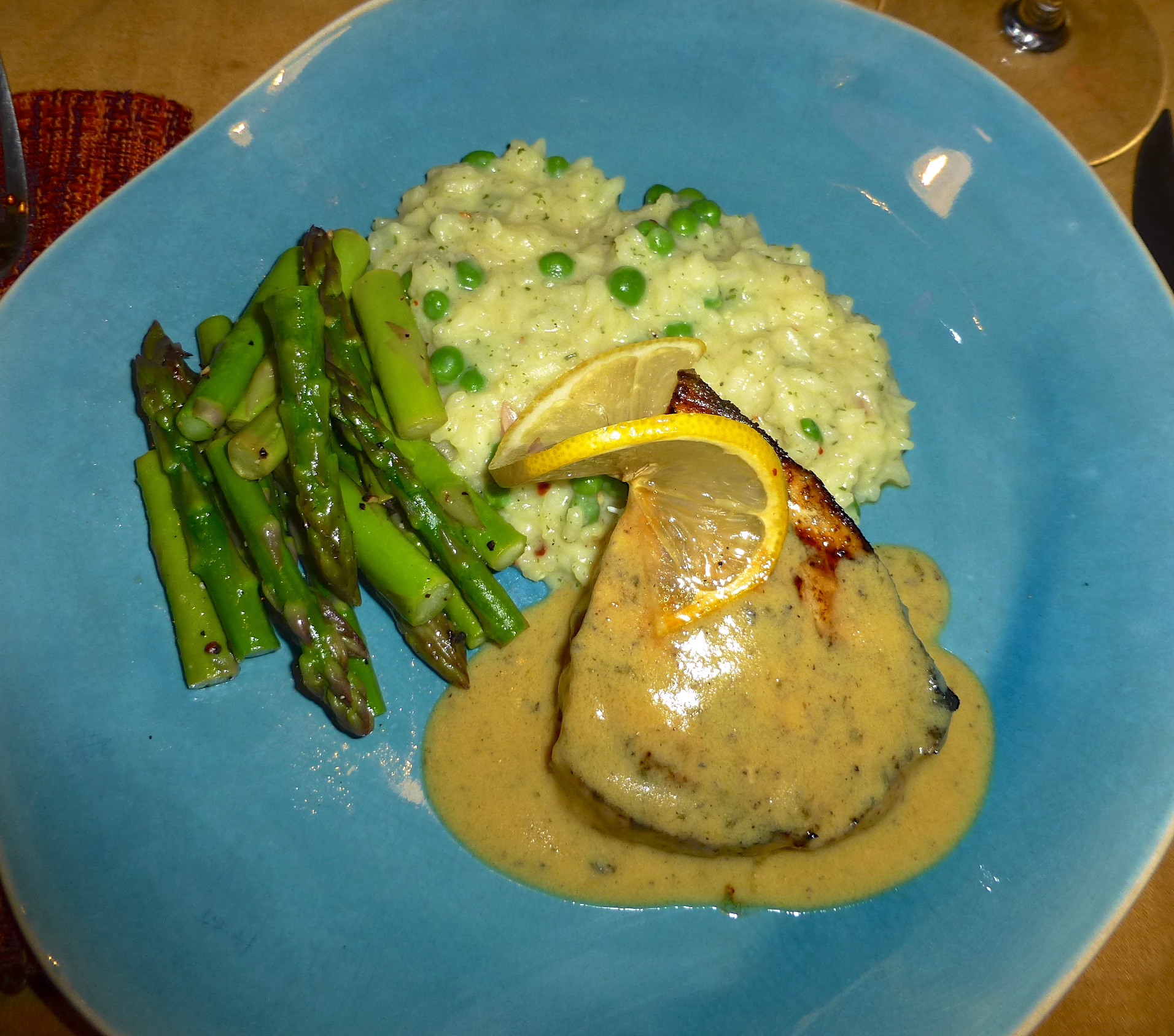 Swordfish is pretty meaty, and can stand up to the strong flavor of Peep’s sauce. I scooped my risotto into it. I dragged my asparagus through it. When I was done, there was not a drop of sauce left on my plate.