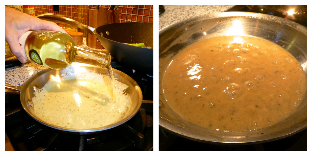 The leftover marinade makes a fantastic sauce. A bit of white wine and a few minutes on the stove to reduce and it’s done!