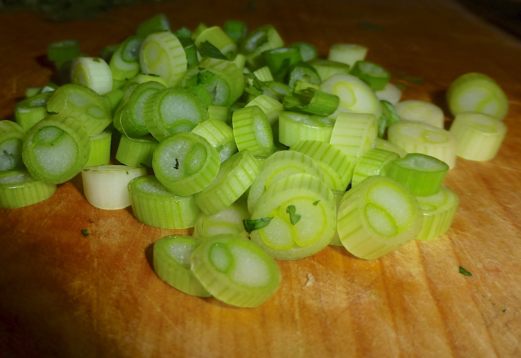 I like to add fresh herbs to any recipe, particularly when the majority of the ingredients are canned or premade. A handful of chopped cilantro and a small amount of green onions joined the party (saving a some for garnishing later).