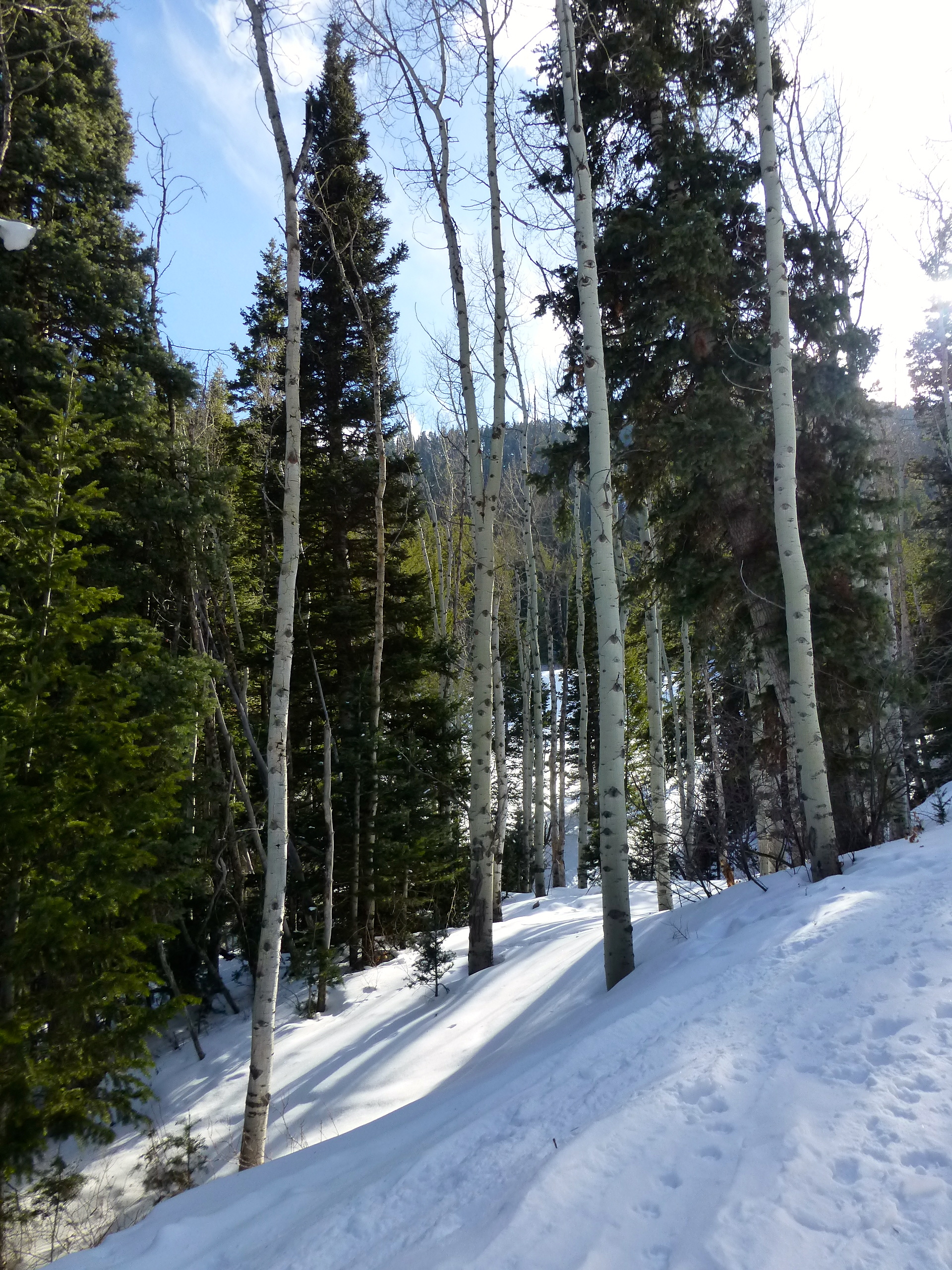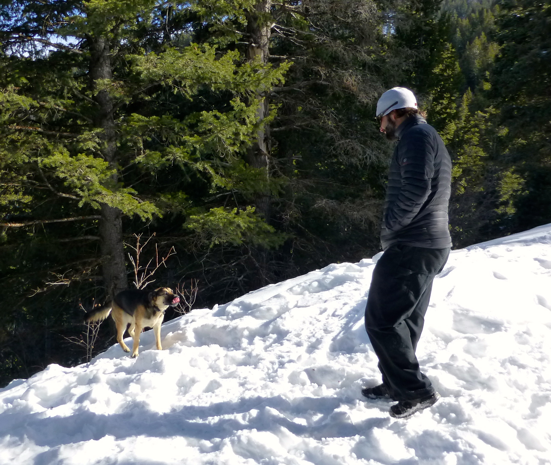 John takes Cholula on ski tours in Summit Park pretty often. He sends lots of gorgeous photos from his iPhone (so sweet) that show lovely, snow-dusted pines and a smiling dog.