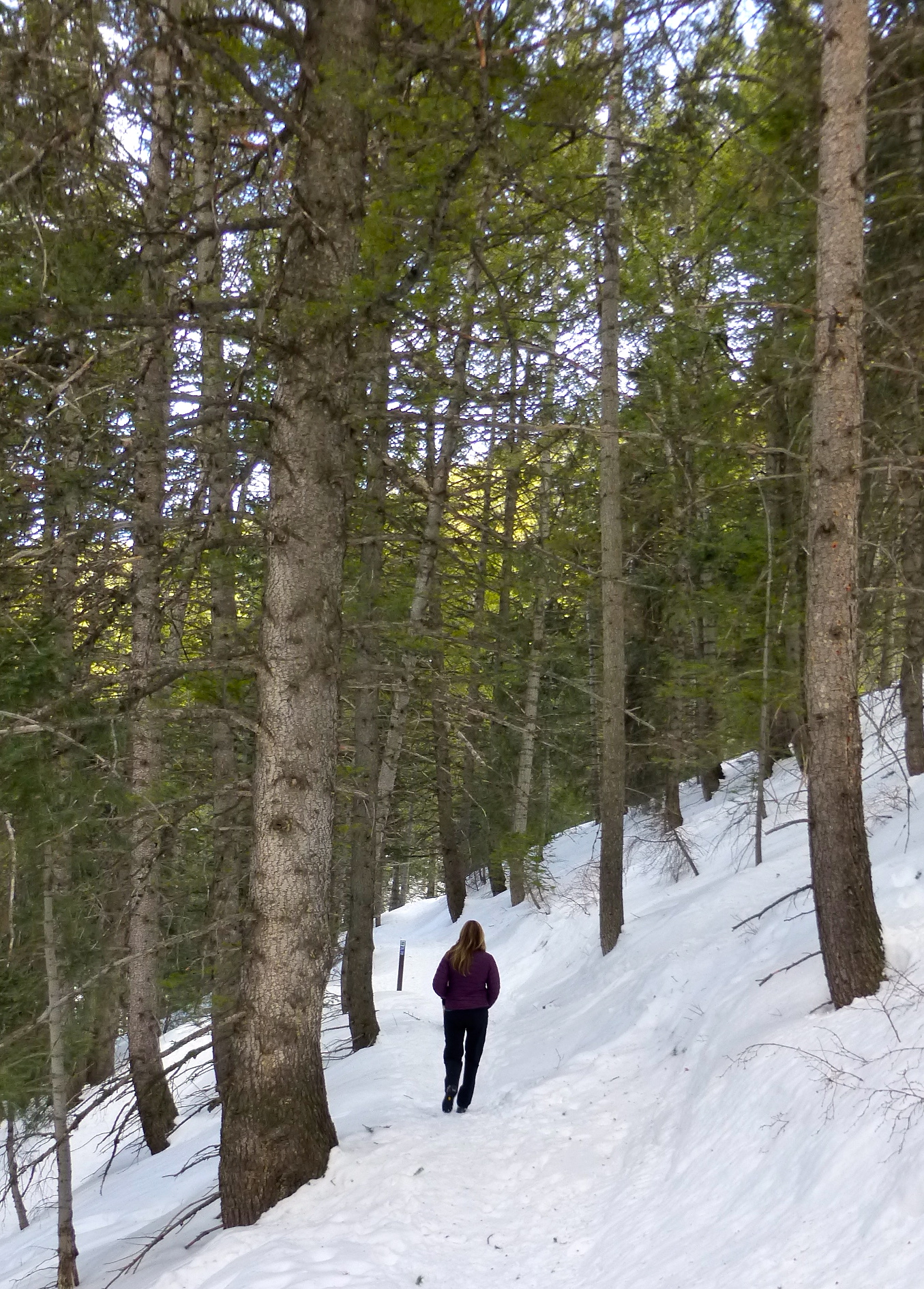 The snow was pretty packed down, the result of many hikers and no recent snowfall. Though the trail looked completely different covered in snow, a few sections were familiar. If I looked up at the sky through the pines, it could have been June.
