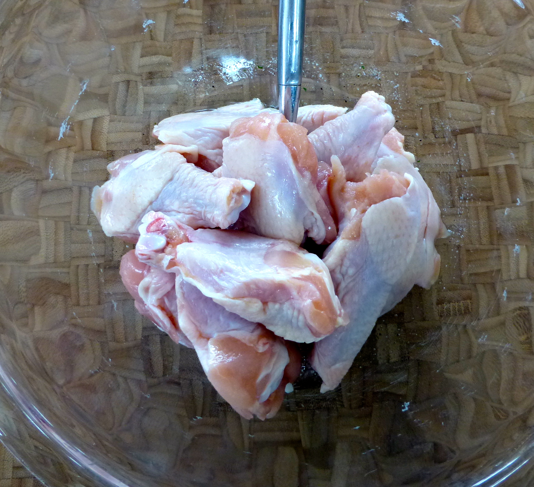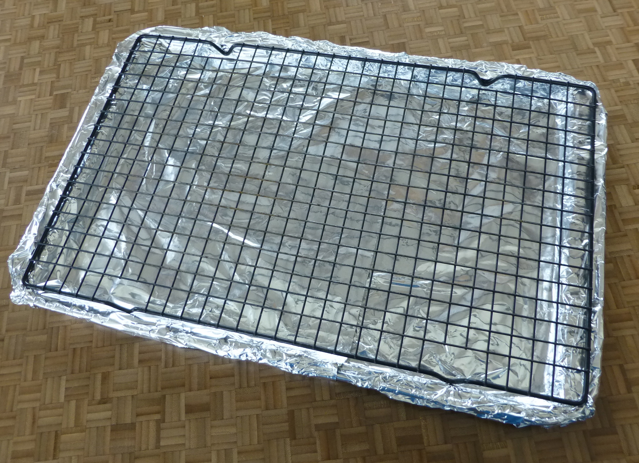 Instead of frying the chicken, I roasted the little wings on a rack placed over a foil-lined baking sheet (to catch drippings).