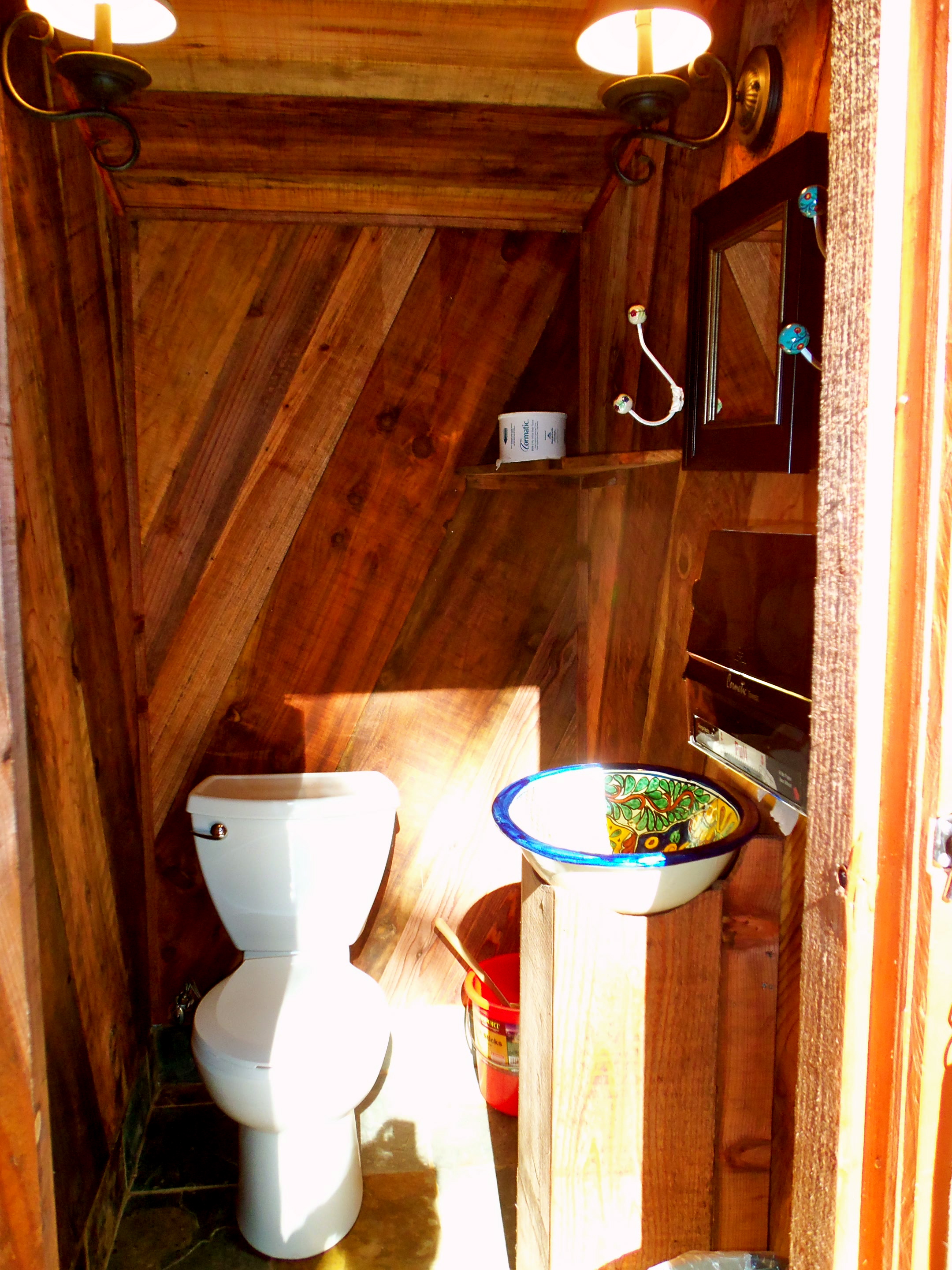 Just behind the tent was a private “outhouse.” I think I squealed when I opened the door. Electricity. Hot water. A true flushing toilet. A gorgeous painted ceramic sink basin. After days upon days of campground living, this could have been the Taj Majal. This was truly glamping.