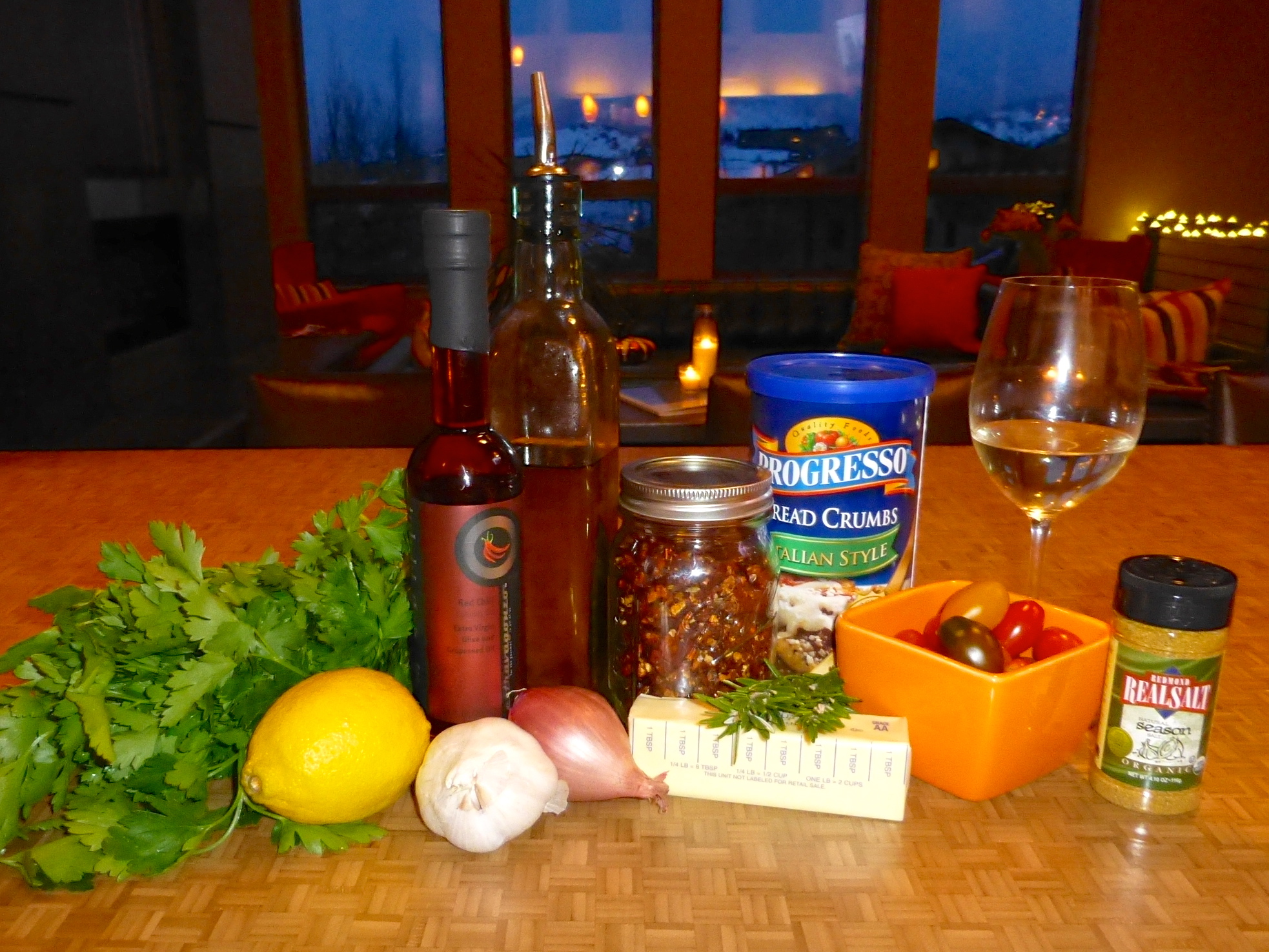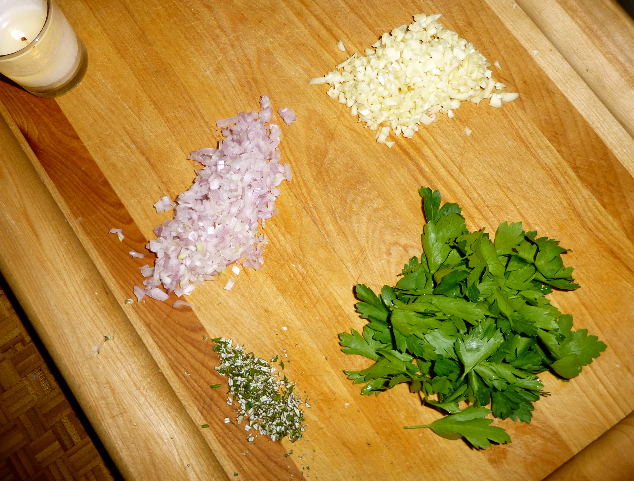 This mixture is the key to this recipe. There’s so much going on! I zested a lemon, then minced some shallot, fresh rosemary (Mom, you can totally leave it out!), Italian parsley, and- of course- lots of garlic. It’s SCAMPI, after all!