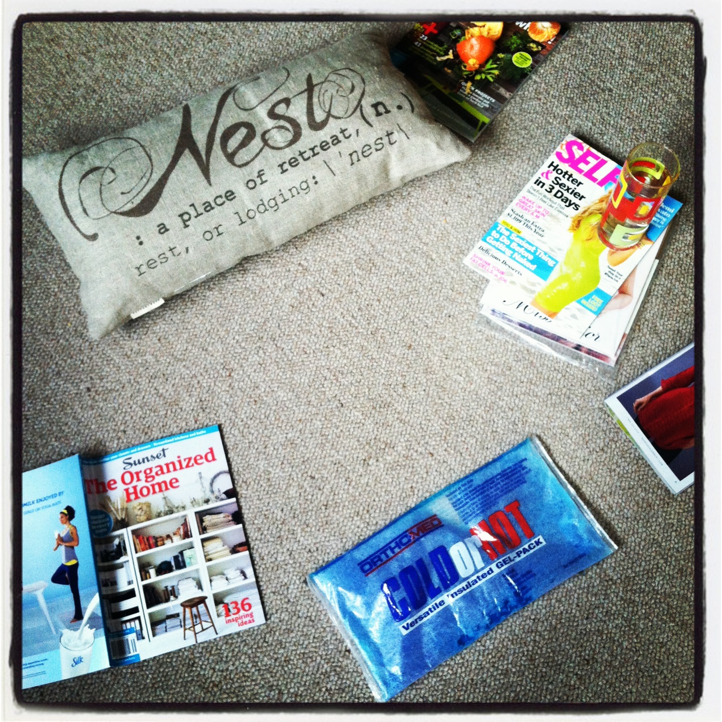 We’ve got a freezer filled with stuff I’ve made over the last few months, and my husband is a way better cook than I am. I have the hall pass to catch up on my stack of outdated magazines and watch as many chick flicks as I can handle. I’ve got medicine to help relieve the discomfort while I heal and a pretty comfy NEST in which to do so.