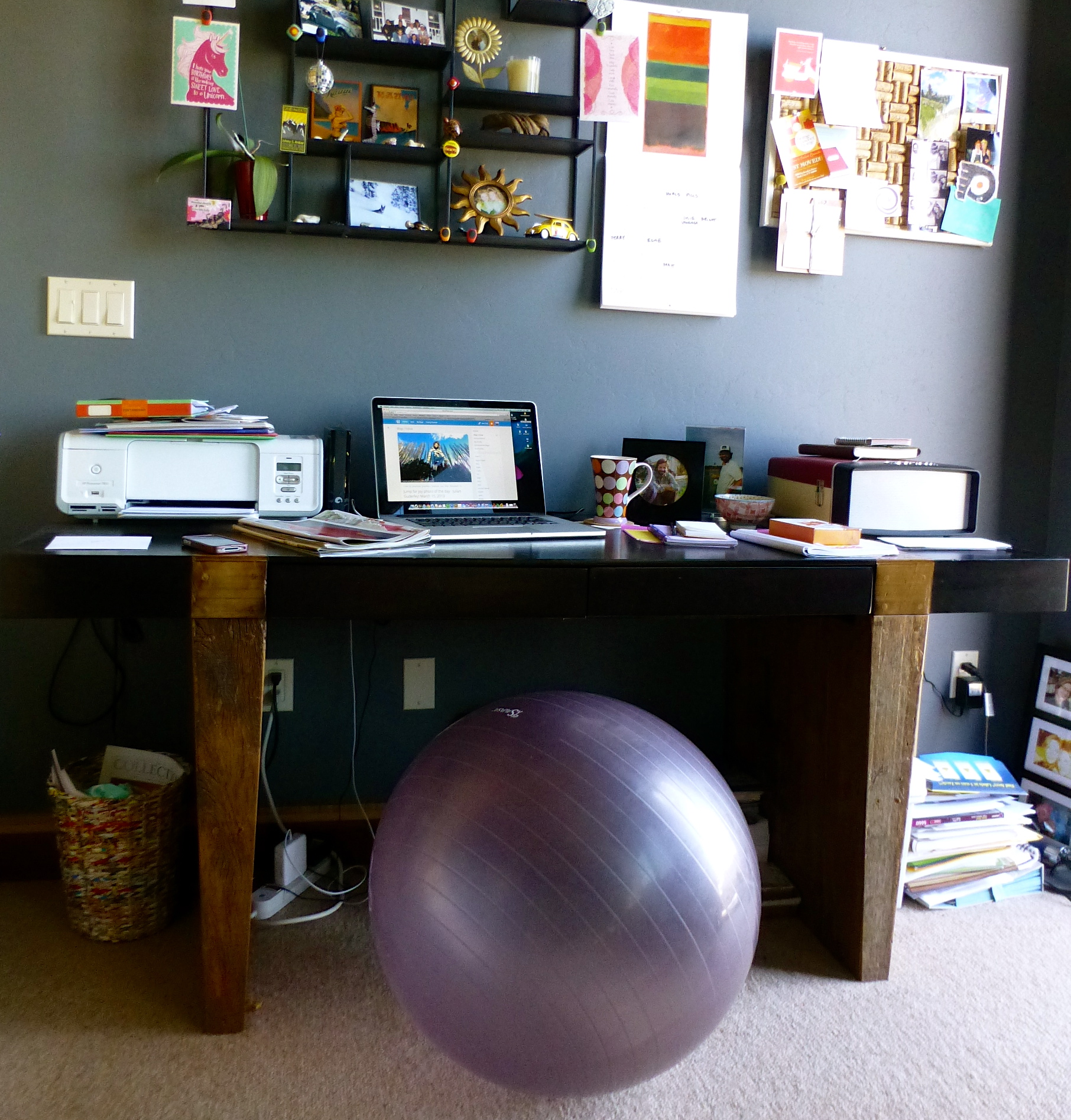 I spent the afternoon on the floor. The painkiller helped, and the steroid shot FINALLY kicked in, hours later. For now, life is little bits of productivity and big bits of laying around. My office chair is now a physioball (still hurts to sit on).