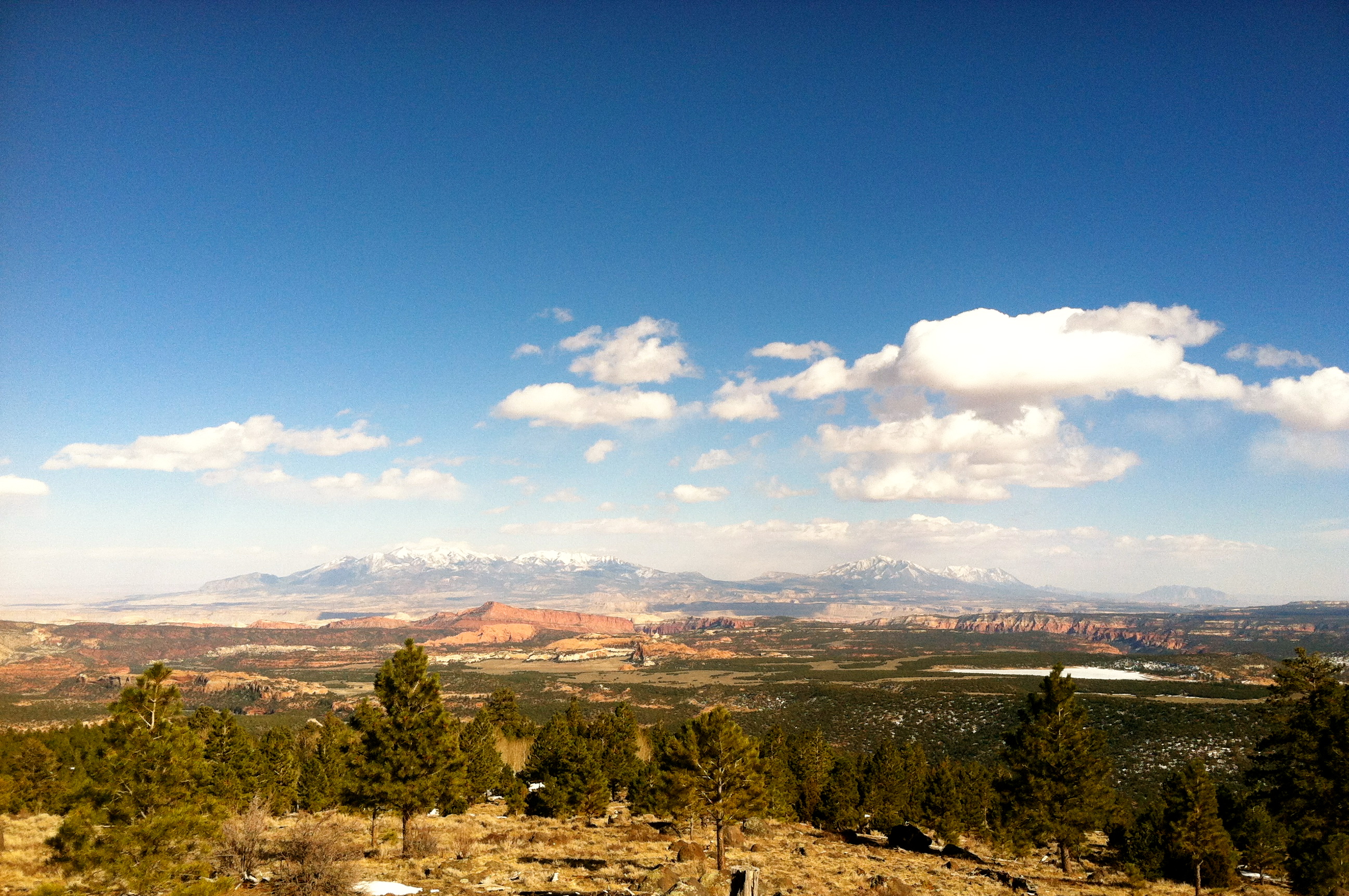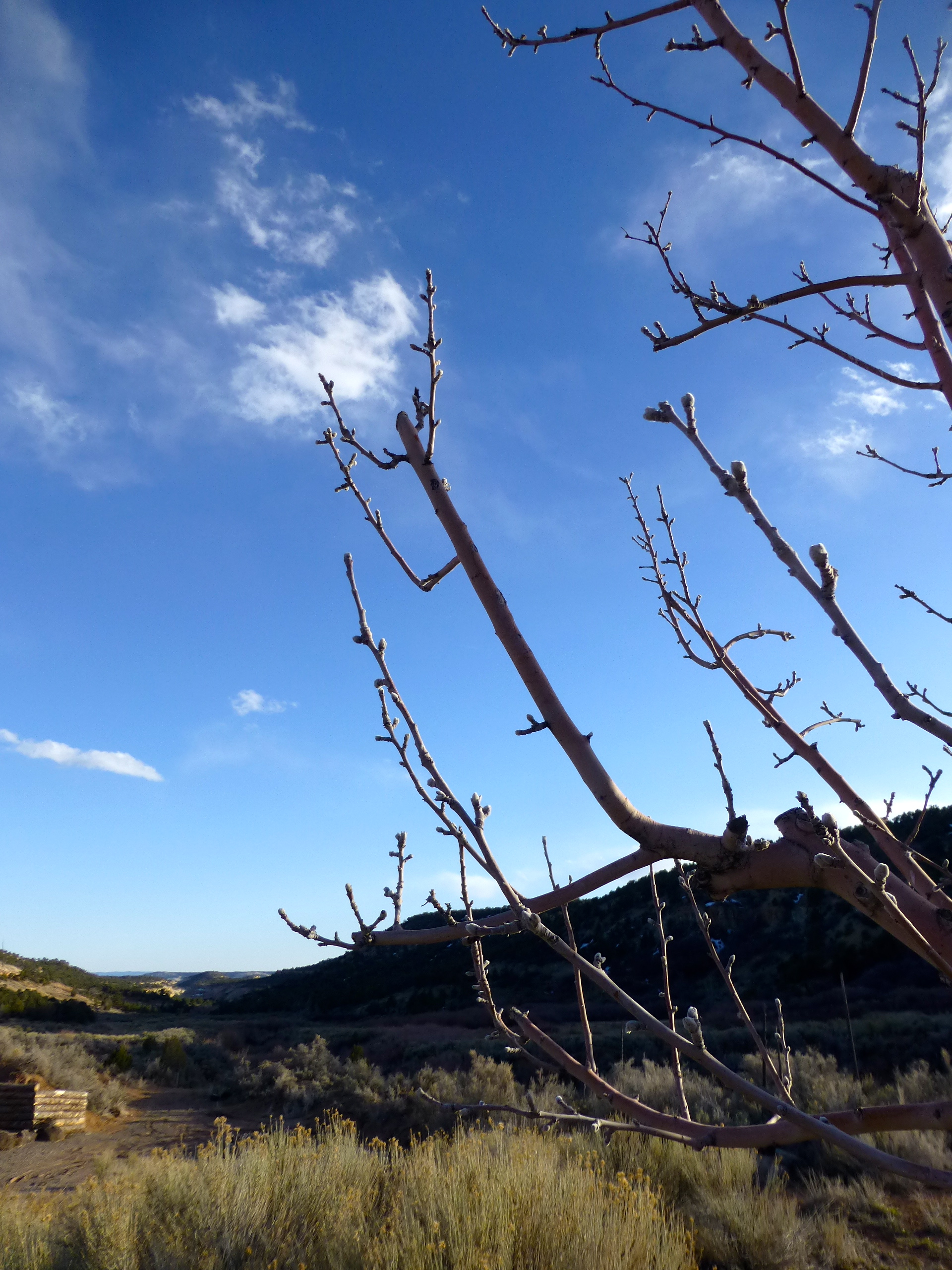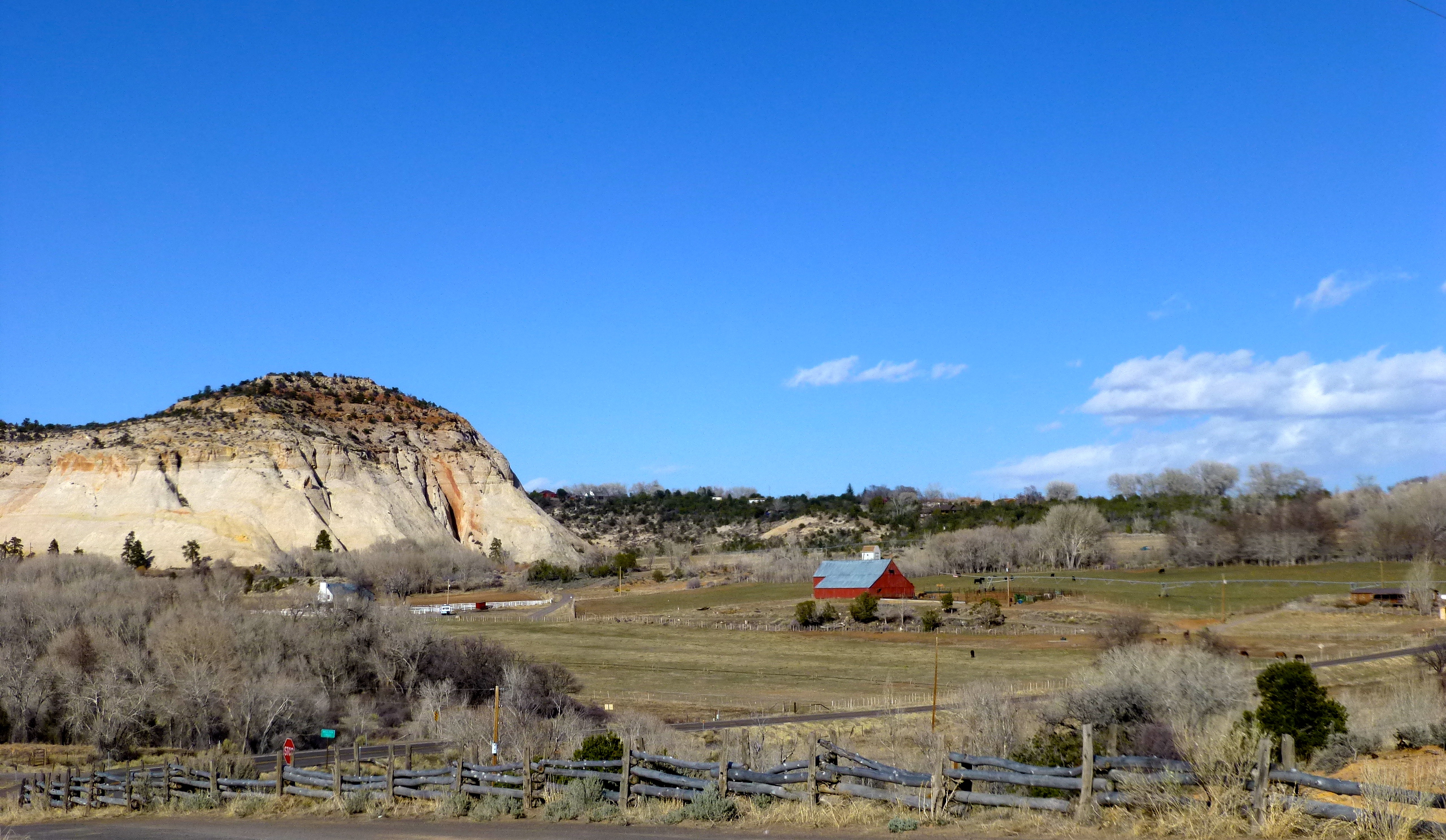 The scenery on the way to Boulder, Utah changes continually. Desert flats. Snowy peaks. Red rock. Sagebrush. Pine trees. Bare aspens. We were treated to a little bit of everything! The only constant was the glorious, expansive blue sky. It was a spectacular day to be on the road.