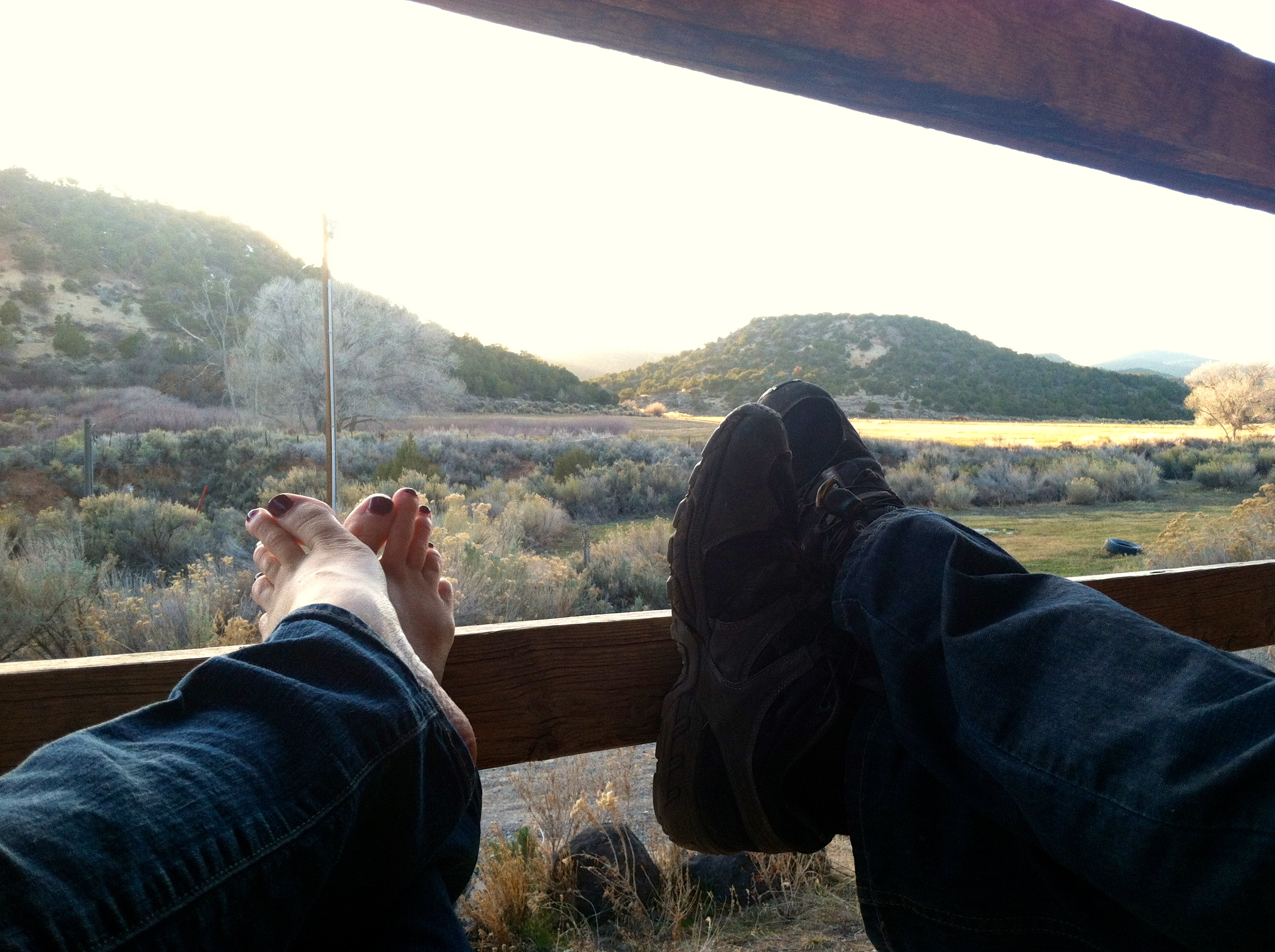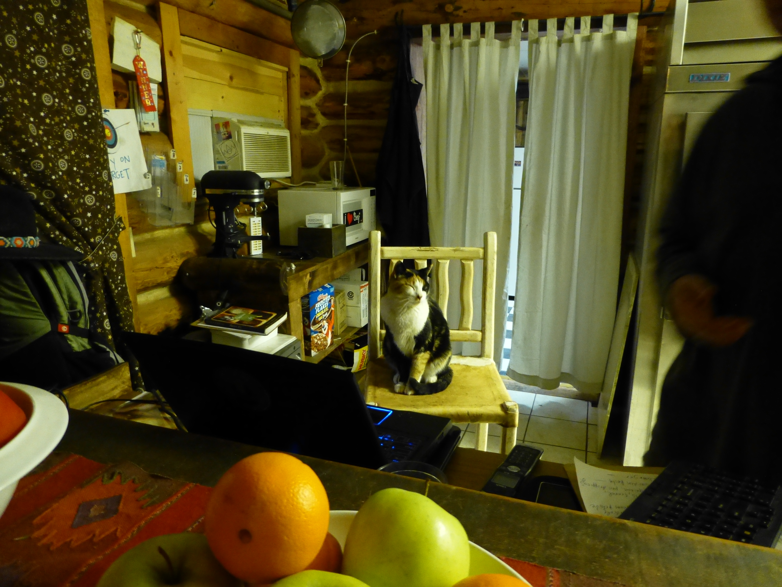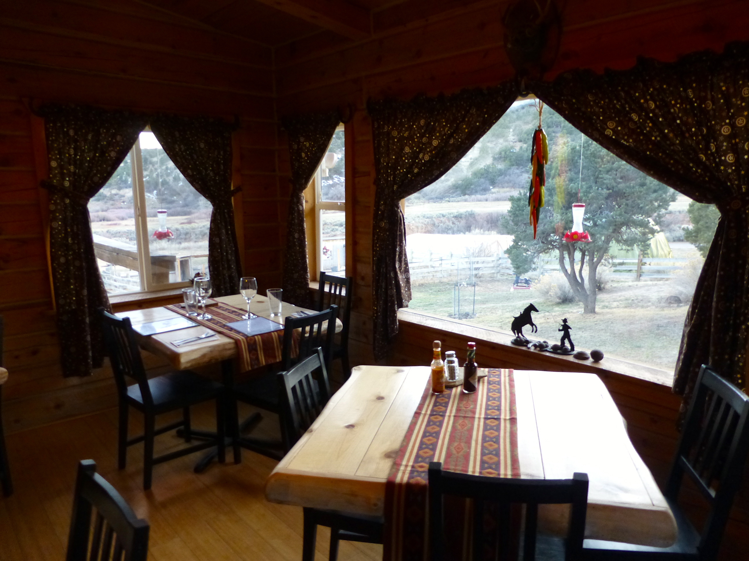 We weren’t the only guests at the Ranch, after all. Friends of the owners and manager were staying in the main lodge, and were just finishing up their meal as we sat down. A purring, one-eyed Calico cat was overseeing the quaint dining room. Jerry Garcia crooned the last few stanzas of Sugaree from a laptop on the counter. The two resident heelers greeted us with intense curiosity before deeming us harmless and retreating to the great room. Again, some people might not like the bohemian, homey vibe– but we were completely content.