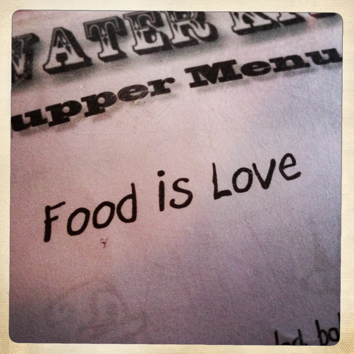 A small corner table with a view of the garden area was set up for us, and our host opened and poured our wine. The phrase, “Food is Love” made me smile as I read over the limited but varied supper menu. I gave Project Reduce Gluten the night off and ordered the pasta carbonara with roasted poblano peppers and a farm fresh egg. John opted for a pork dish with apple/fennel quinoa. I pulled a cookbook from the bookshelf called “A Girl and her Pig” and happily sipped wine while John reviewed some maps in preparation for tomorrow’s yet-unknown adventures. The high voice of my beloved Neil Young wafted through the air from the laptop. A candle flickered on our table. I felt a relief– a peacefulness I hadn’t realized I’d needed.