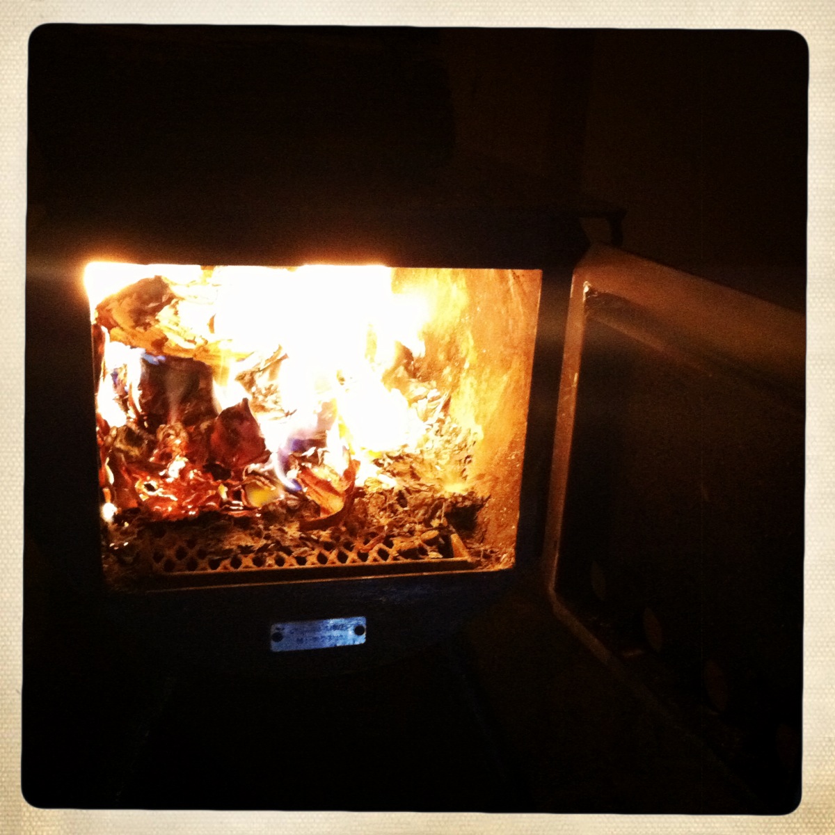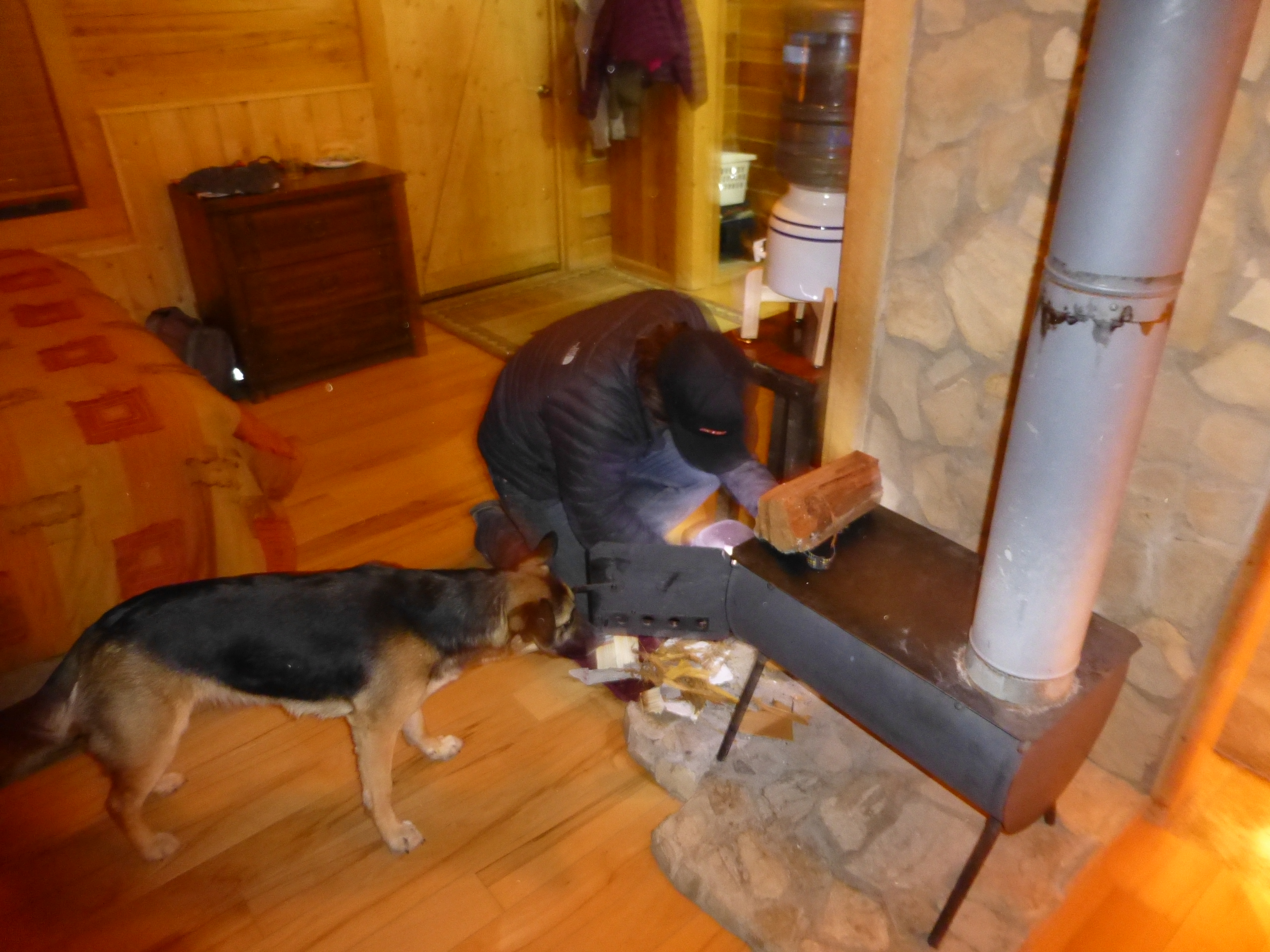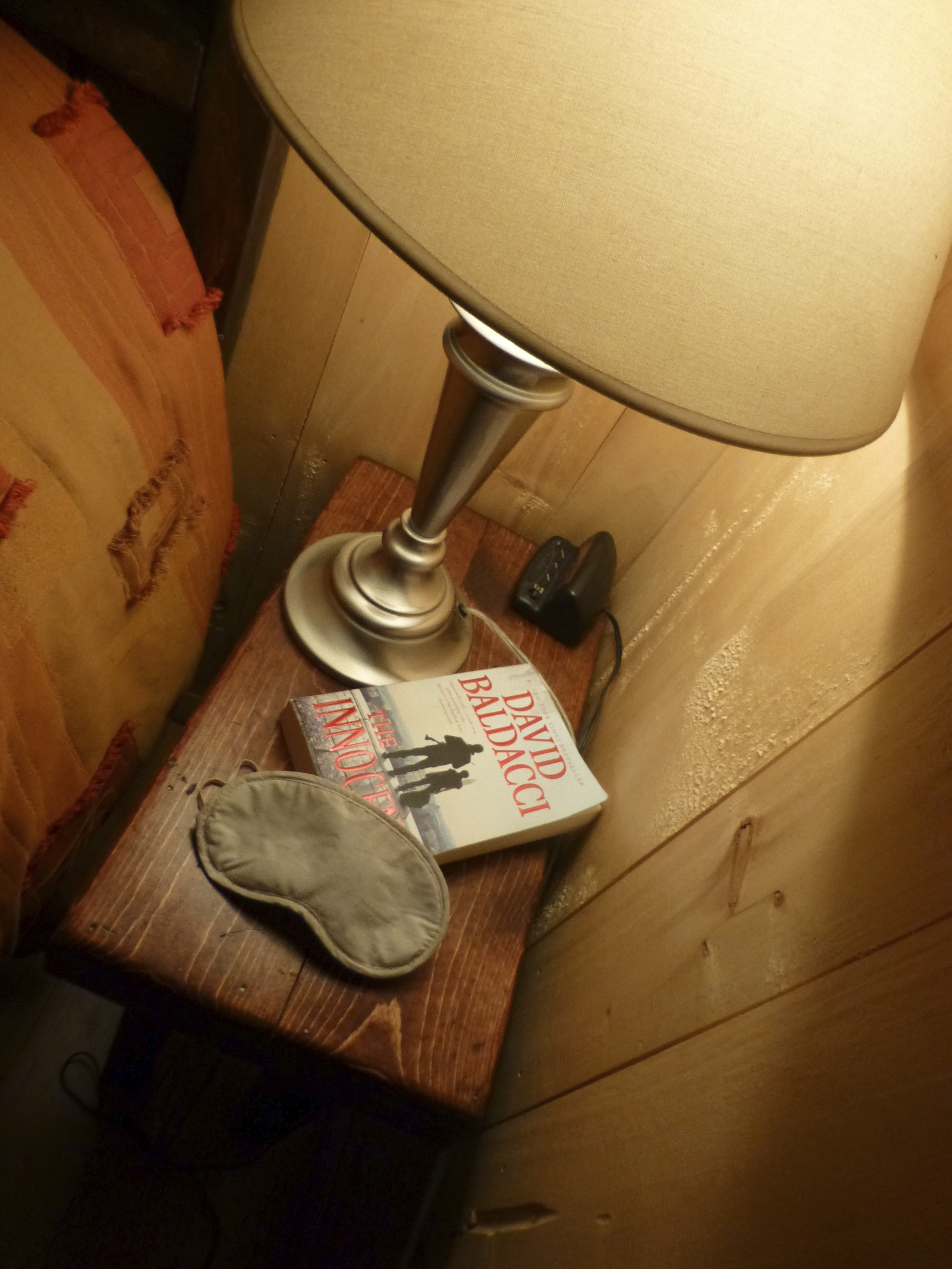 Fat and tipsy and happy, we held hands along the trail back to our cabin abode, the light of the half-moon and occasional solar lamp showing the way. Cholula helped John start a fire in the stove and then the three of us snuggled up on the family bed with books, reading by headlamp before being lulled into dreamland by the crackle of the fire. Pure contentment.
