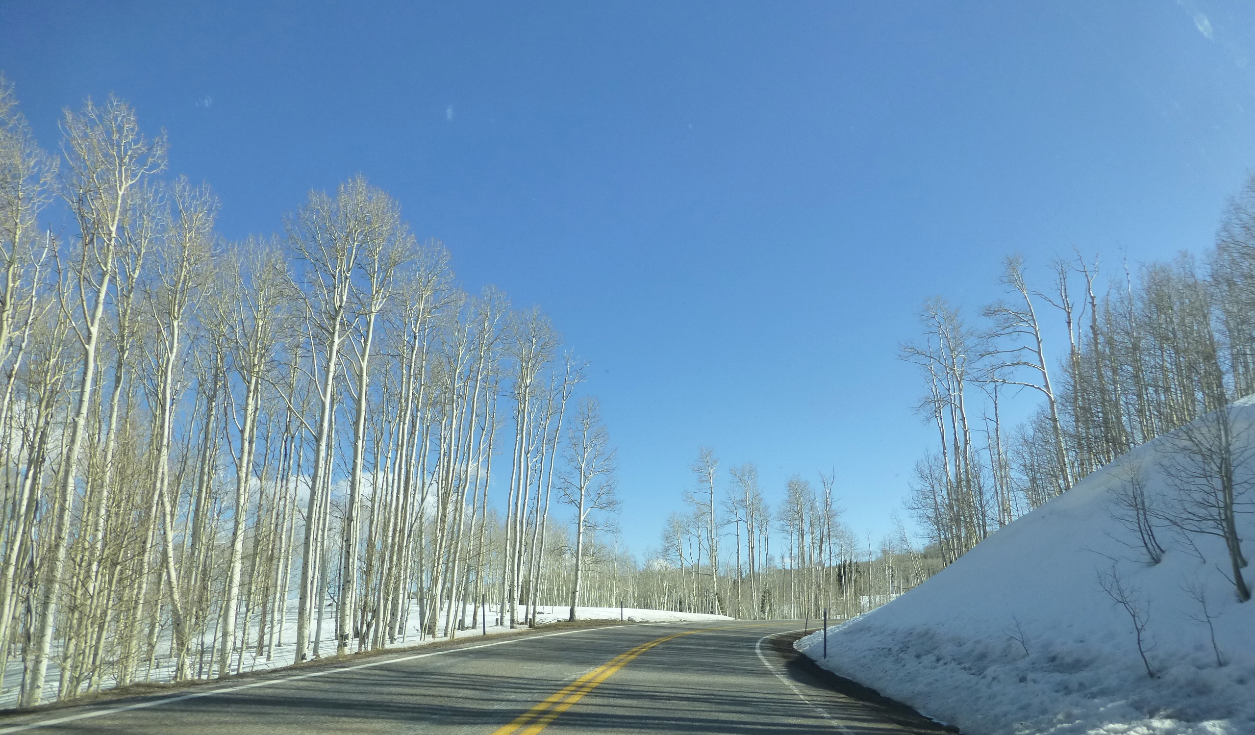 Packing for 7 days on the road in Utah/Colorado during March is no easy feat. One really has to be ready for any weather conditions. From fuzzy sweaters to never-worn sundresses, wool socks and boots to flip flops- my suitcase had multiple personalities. So did the roof of the Subaru. Ski tour? Mountain bike trails? Maybe both! Sweet Cholula sensed that my back issues were going to make LAP TIME impossible on this trip, and settled into the back seat nest we created for her. (Side: Thank you, Lortab.) We grinned at each other with anticipation of what might come our way over the next week on this first road trip of the season. And then we hit the road.