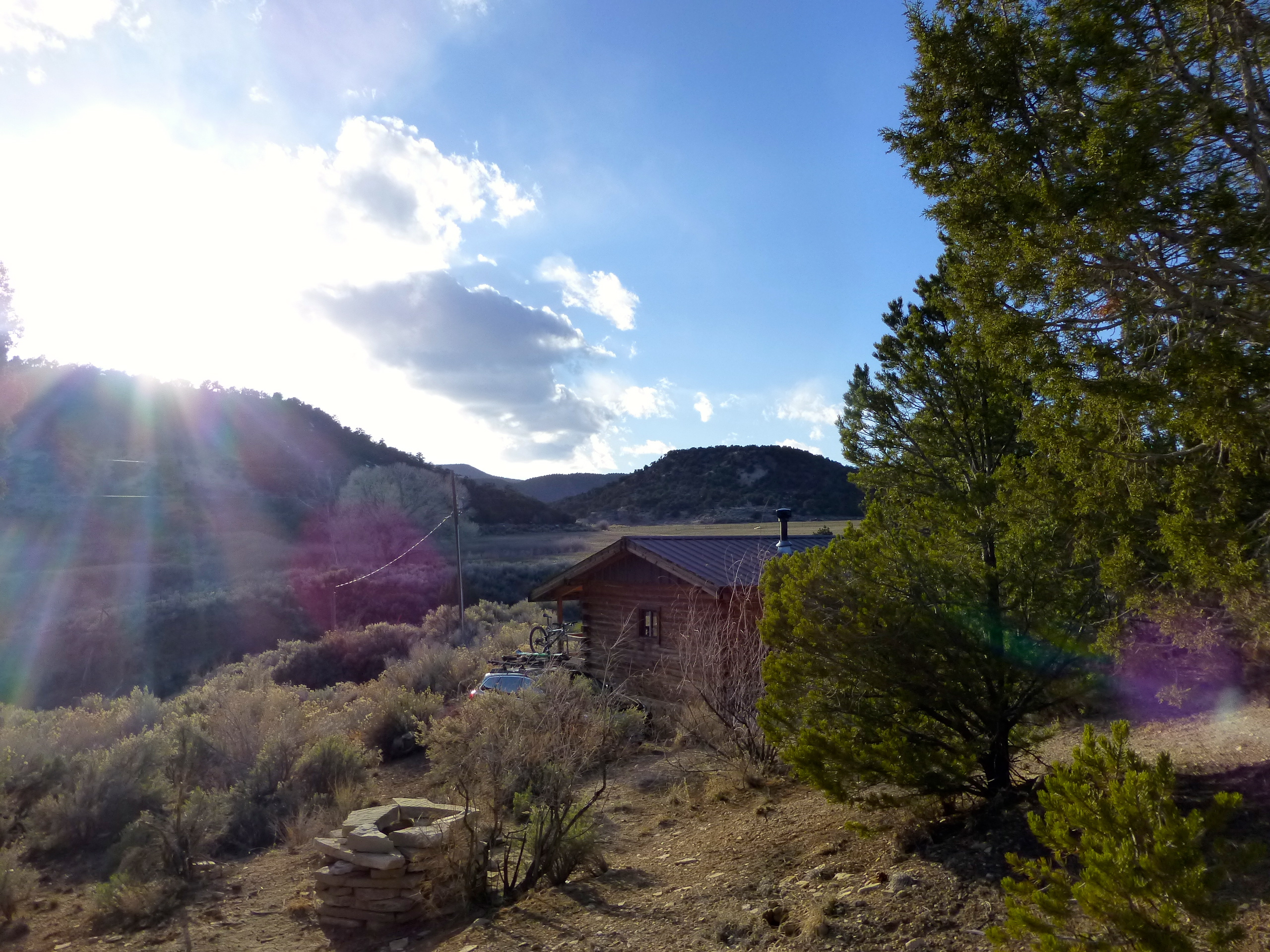 We’d stumbled upon the Boulder Mountain Guest Ranch online accidentally, while searching for another Boulder accommodation. When we saw that we could stay in our own cabin WITH Cholula for less than the other places, it seemed like a no-brainer. I’d scrawled the directions on a piece of scrap paper (no cell service or GPS out here!)- ‘sharp right at Mile Marker 83.’ Three and a half bumpy miles down a dirt road (ominously titled, “Hell’s Backbone”) brought us to our home for the next three nights.