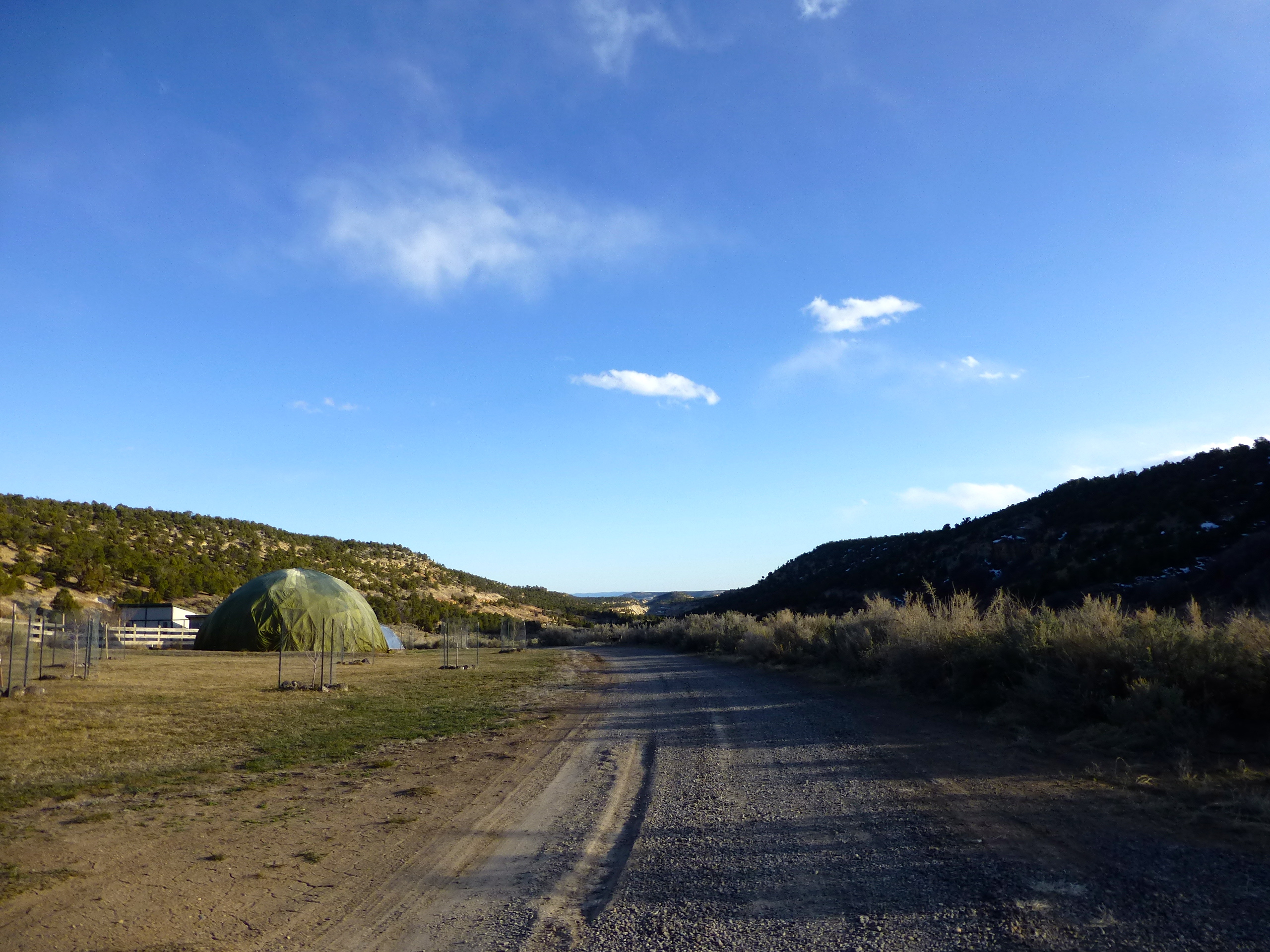 We made quick work of settling in. We took a moment to savor the view from the sunny porch before deciding to make our happy hour mobile and explore the grounds. We had the Ranch to ourselves, really. It had just opened for the season last week, and the first guests had left before we arrived. We walked past a huge dome, greenhouses, and garden sheds that were just being reopened after winter’s hibernation. I imagined a garden full of fresh veggies and flowers where the dirt was now still just thawed and chickens pecking around their coop in the sunshine. The only animal enjoying the sunshine now was a rambunctious half-pint German Shepard/Lab mix who was happy to finally be out of the car. Cholula ran in circles, her quivering nose, crooked ears, and wagging tail working overtime in this incredible new paradise.