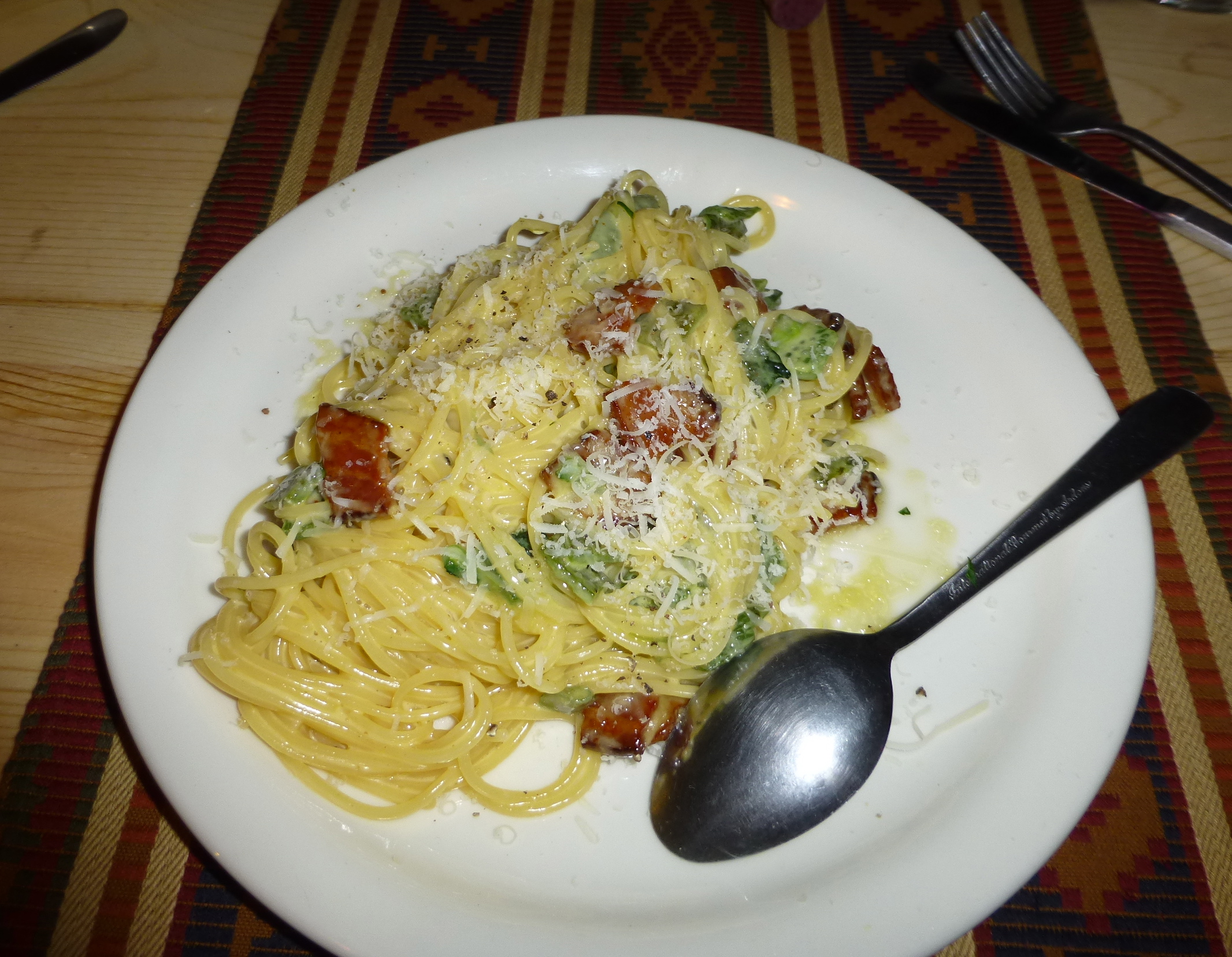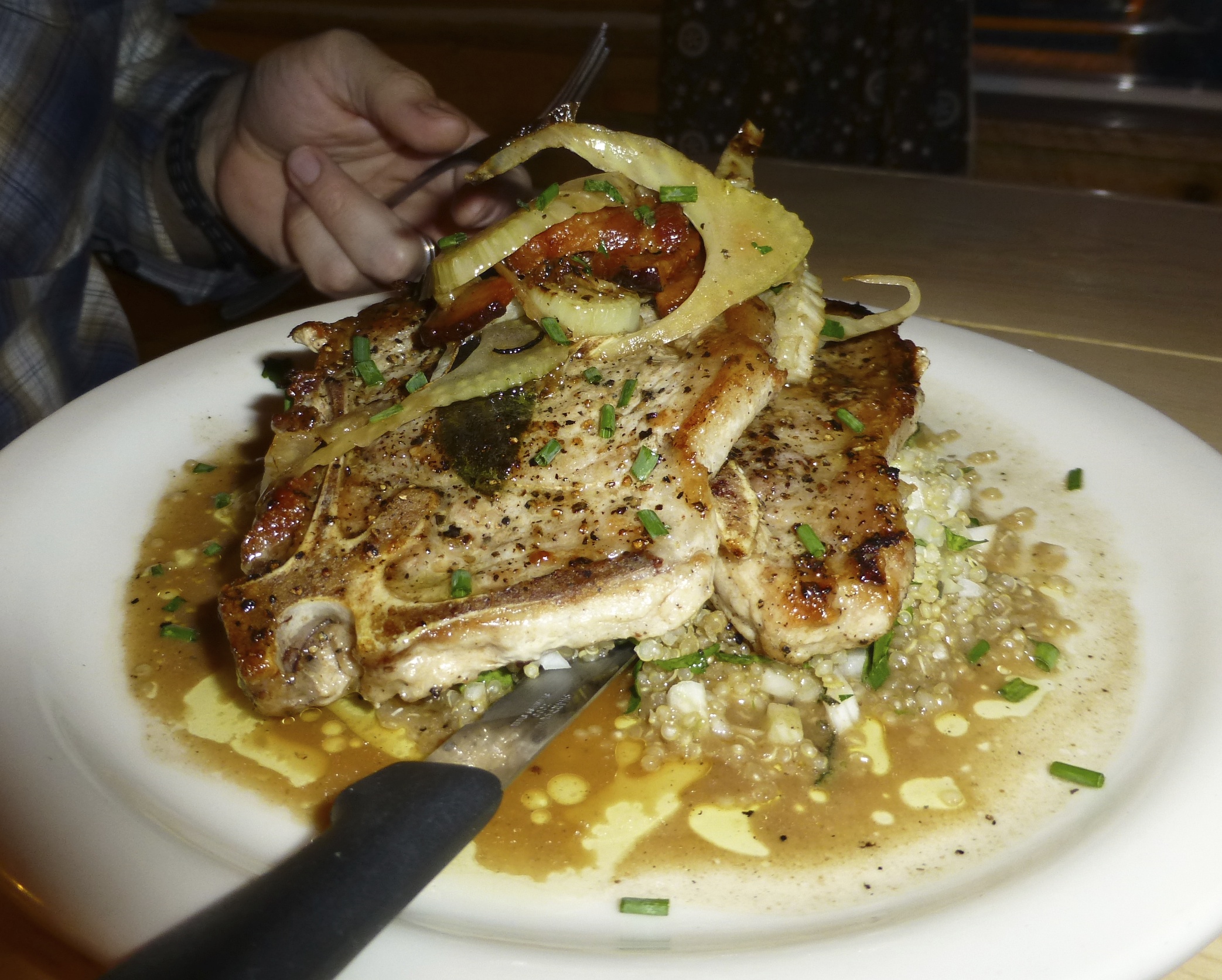 After a surprisingly fresh and delicious salad course, our dinners arrived. Both plates were beautiful, fragrant, generous- and scrumptious. I was completely impressed that these two dishes came out of that small kitchen on a ranch in the middle of nowhere.