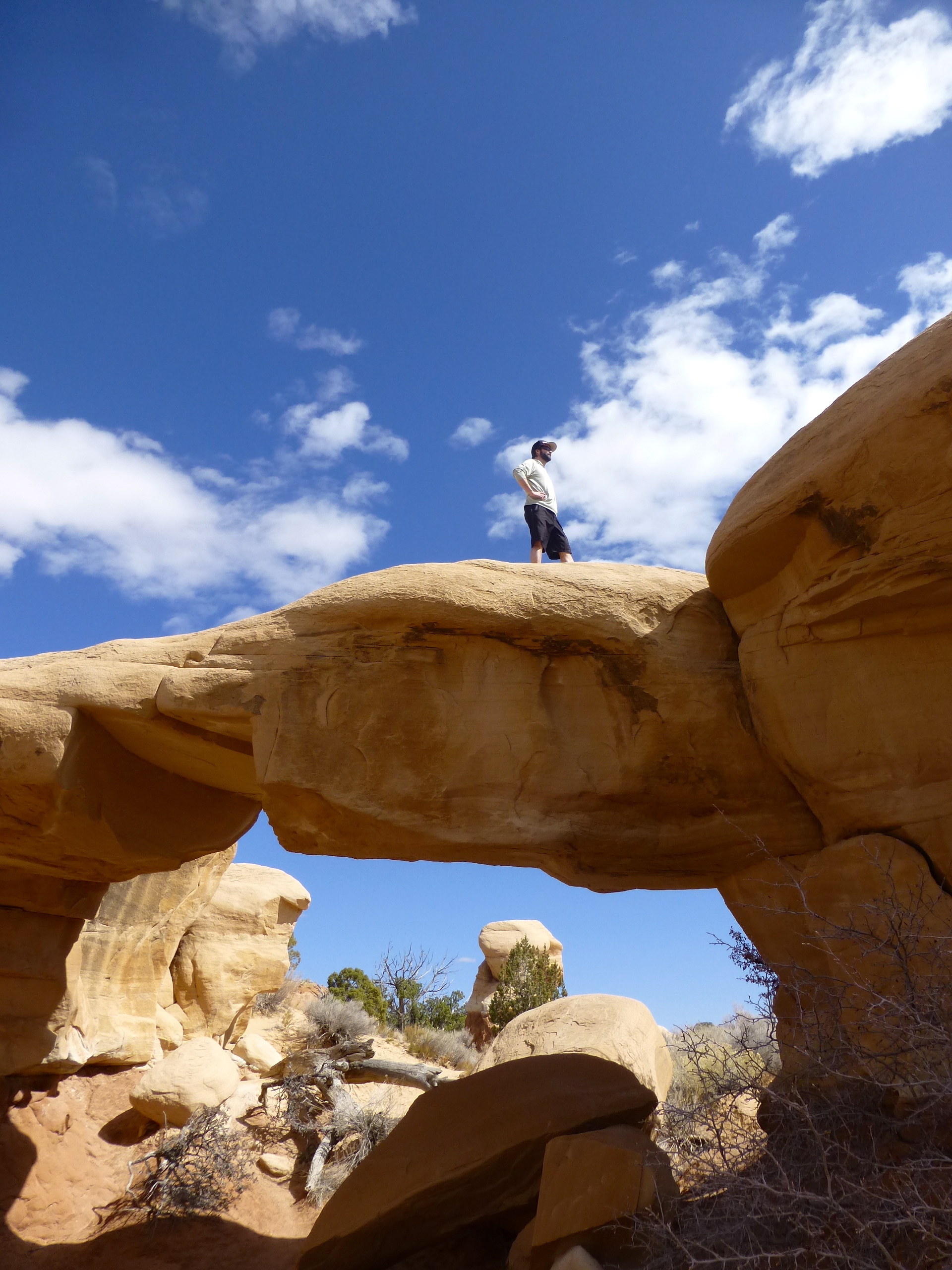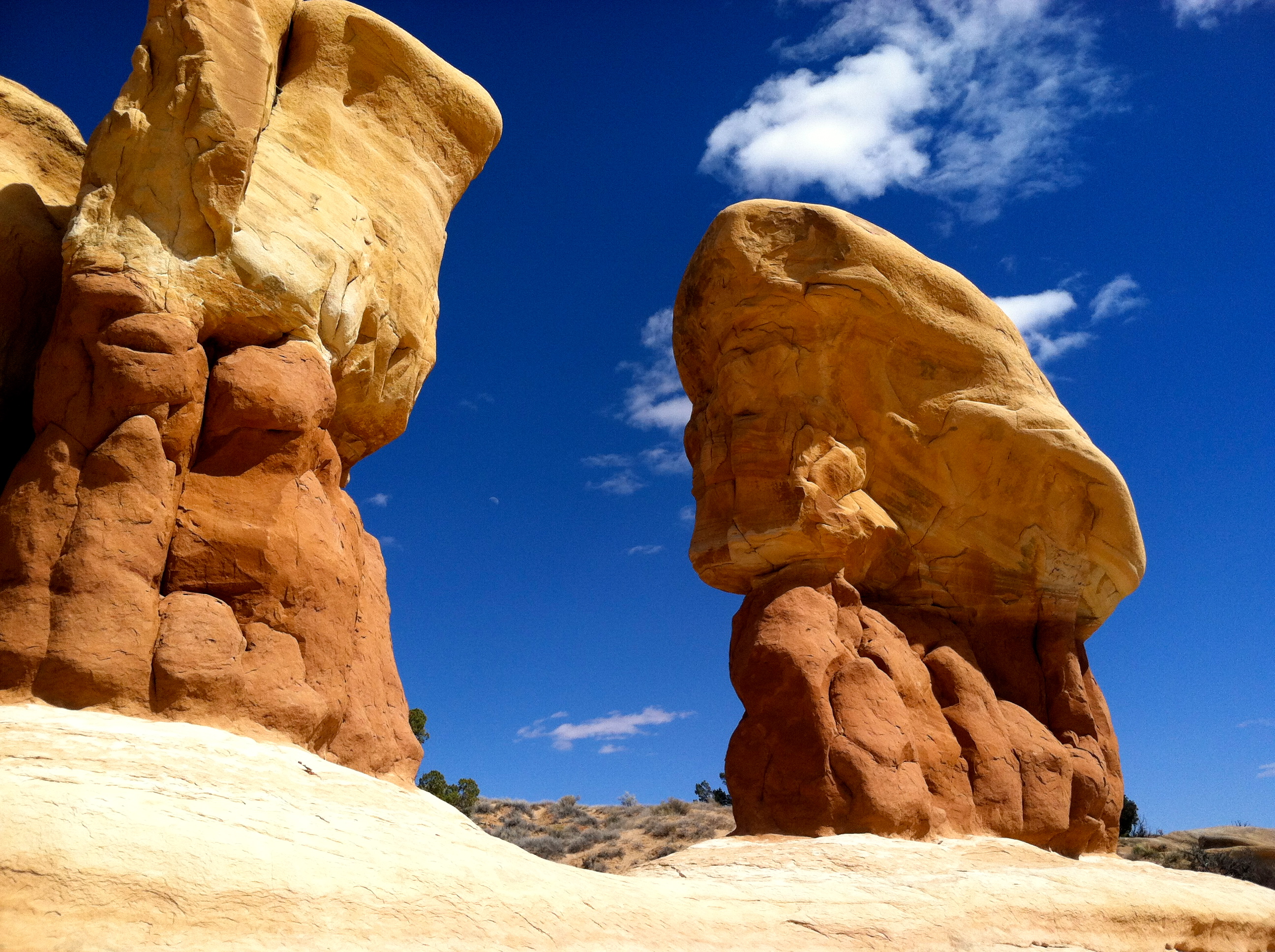 When we parked the car and started walking, just to get our blood pumping, we had no clue what we were about to find. Red rocks, stone arches, and crazy hoodoos (uneven pillars of sandstone with hard caps) created a natural hide-and-seek playground. John, Cholula, and I crawled around the rock formations like little mountain goats, shouting echoes through the caverns and giggling like kids. The views were incredible; the day was ideal.
