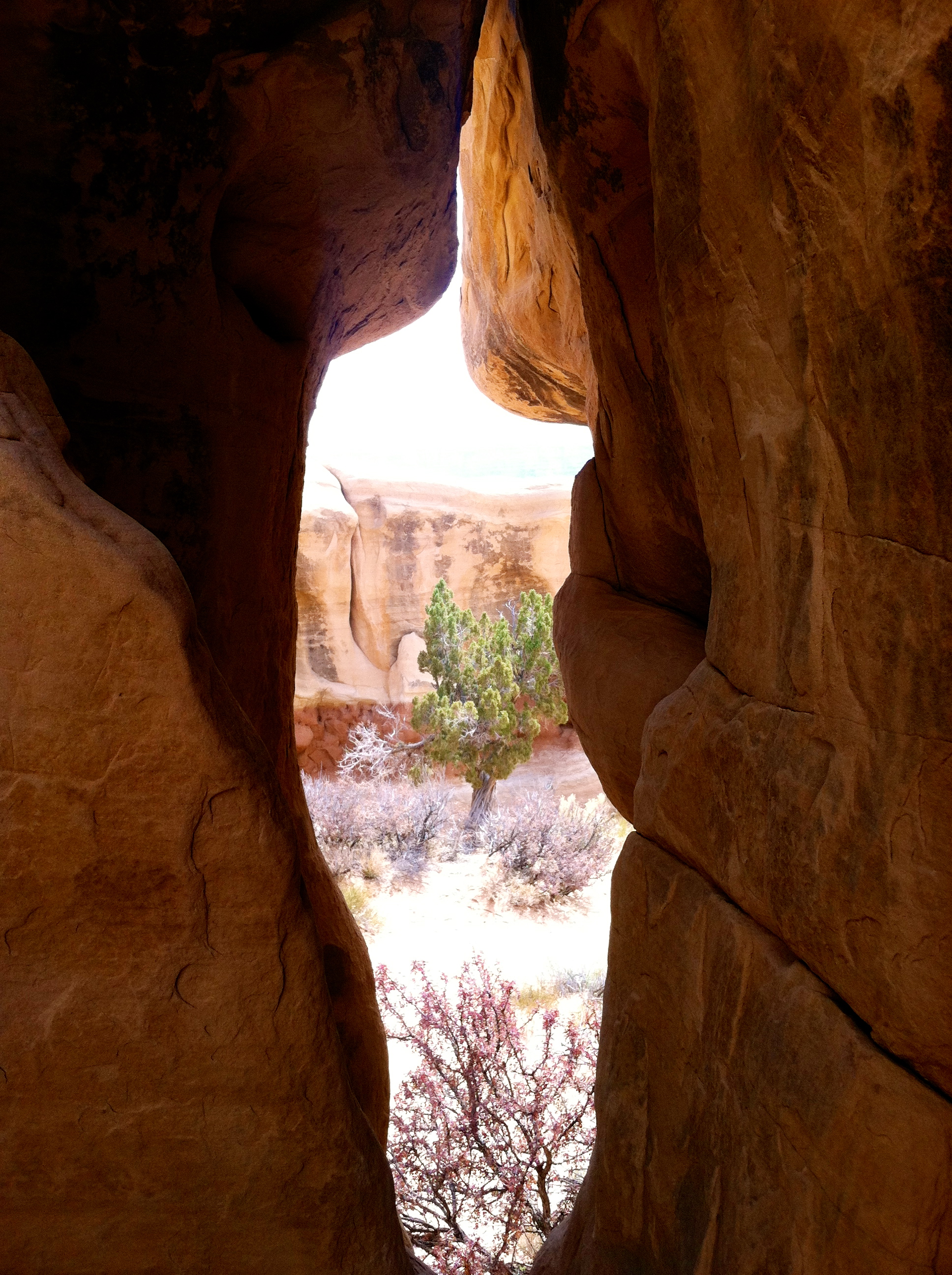 We slathered sunscreen onto our pale skin, giddy at the opportunity to shed enough clothing to warrant it. Springtime in the desert! I signed my new name to the trail’s register, said a silent prayer for my back, and off we went.