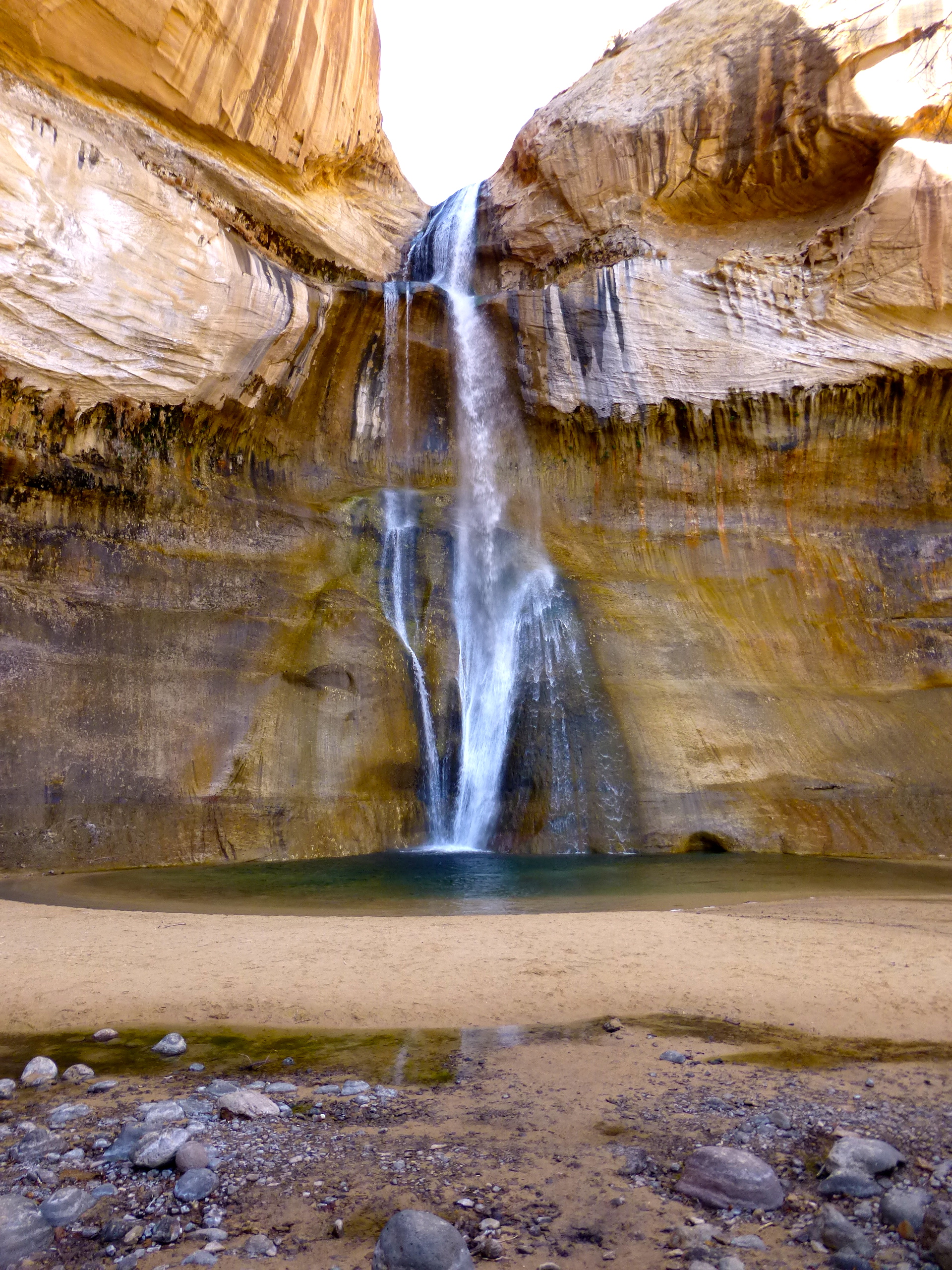 We could hear Calf Creek Falls before we could see it. The sometimes painful three-mile hike in was immediately worth it, as we felt the mist from the 125-foot waterfall on our cheeks. How lucky to have this moment to ourselves!
