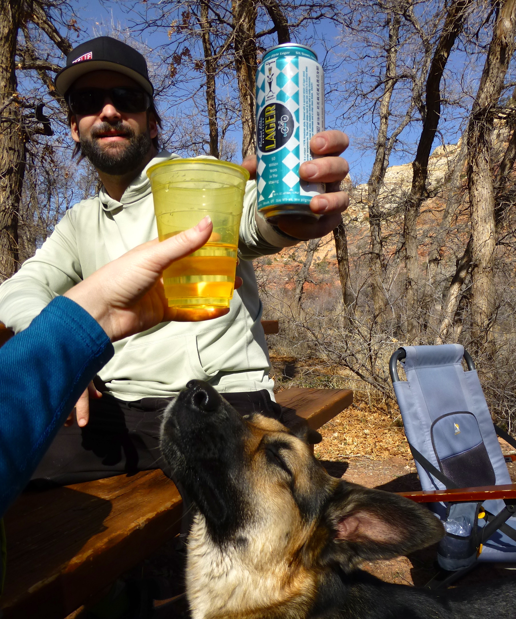 The hike back out provided a different perspective of the trail. The mid-afternoon sun’s heat made our mouths water for the cold beverages awaiting us in the cooler. While I dug for a necessary pain-reliever in my bag, John set up a lovely happy hour in the empty day-use picnic area. A family “cheers!” ended our happy hike.