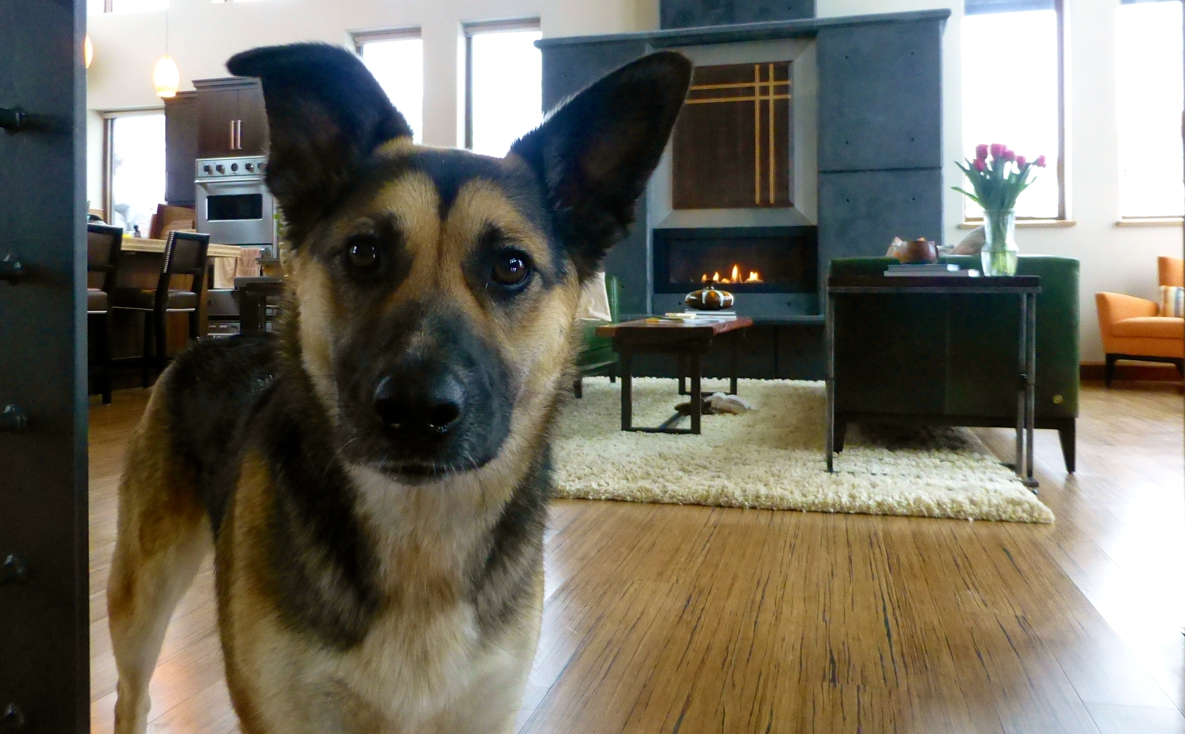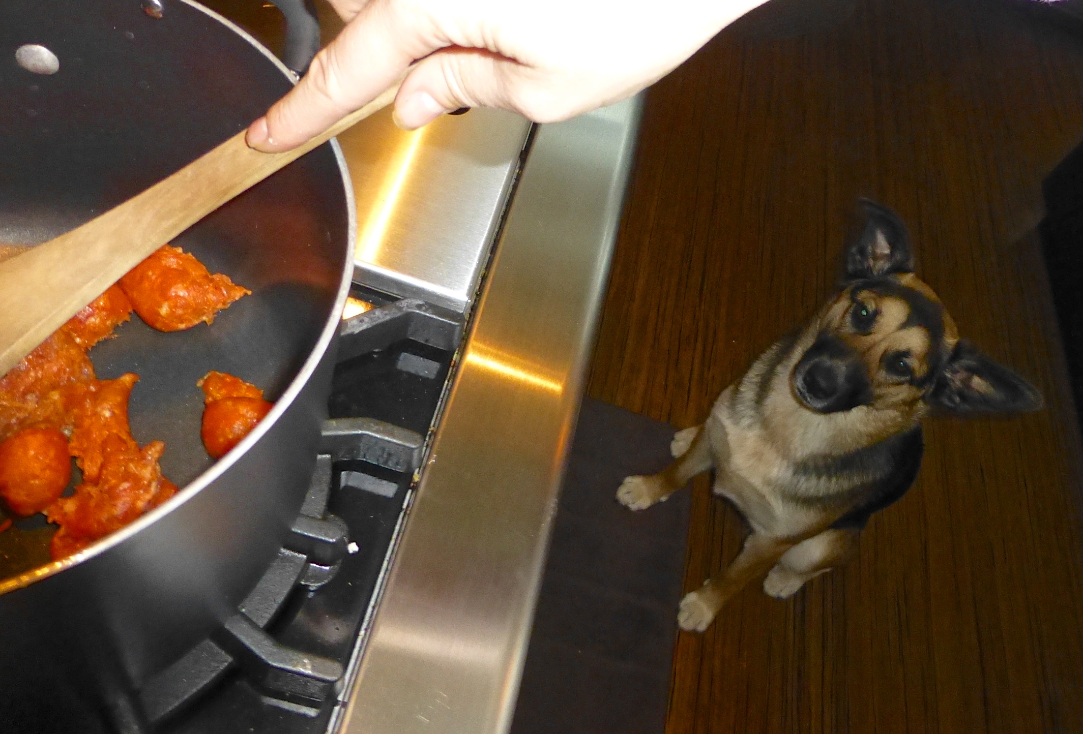 Anytime there’s meat cooking in the kitchen, be careful not to step on Cholula!