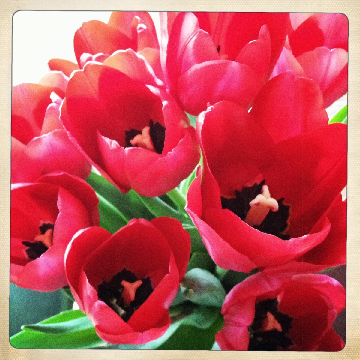 Love the photo of you and Cholula, the happy hour spread, the elk herd, the berries, and of course, those spring flowers! What a gorgeous, colorful pic.