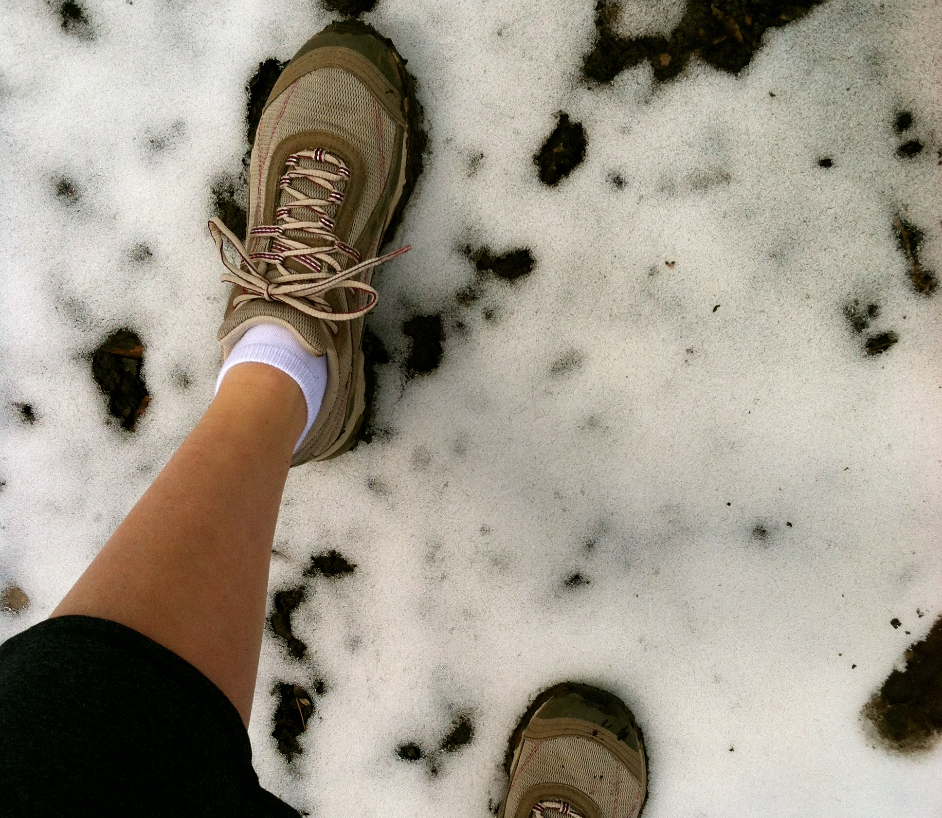Spring was putting serious effort into showing up for the year. Despite the occasional icy patch on the creek, the grasses that flanked the trail were mostly green. The trees hadn’t started budding yet, but I could imagine what a cool and shady hike this would be in summertime. I raised my head to the sunshine, smiling at the sky and feeling grateful to live in such a beautiful place. I attempted (and failed) another Mama/Doggie photo shoot with Cholula. Birds were chirping and the creek babbled away peacefully beside me.