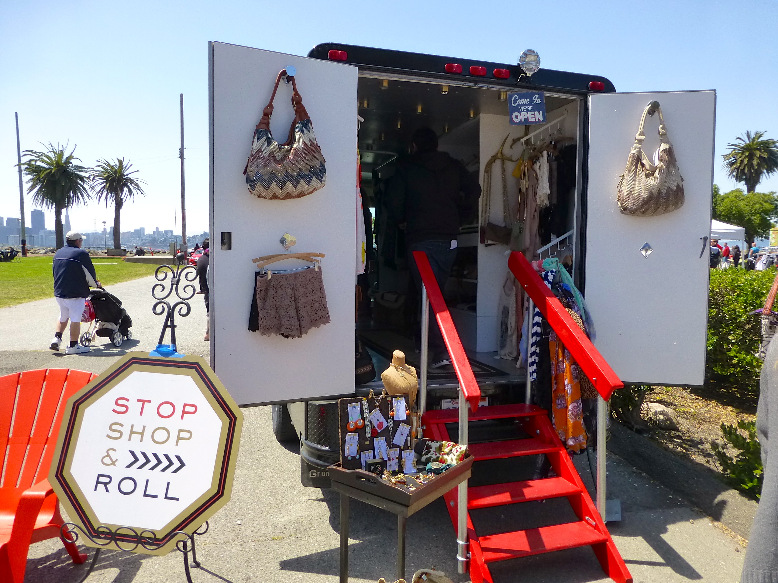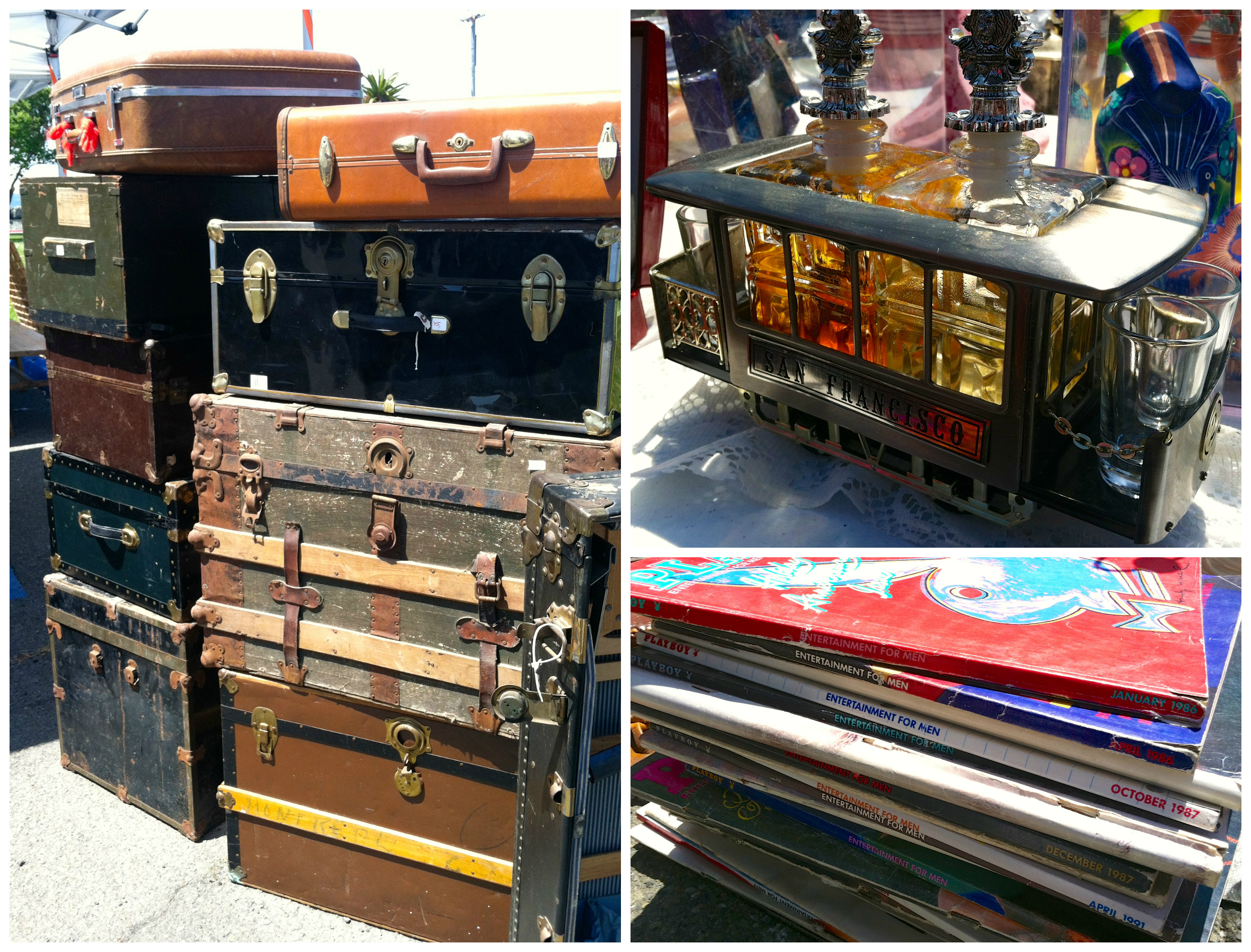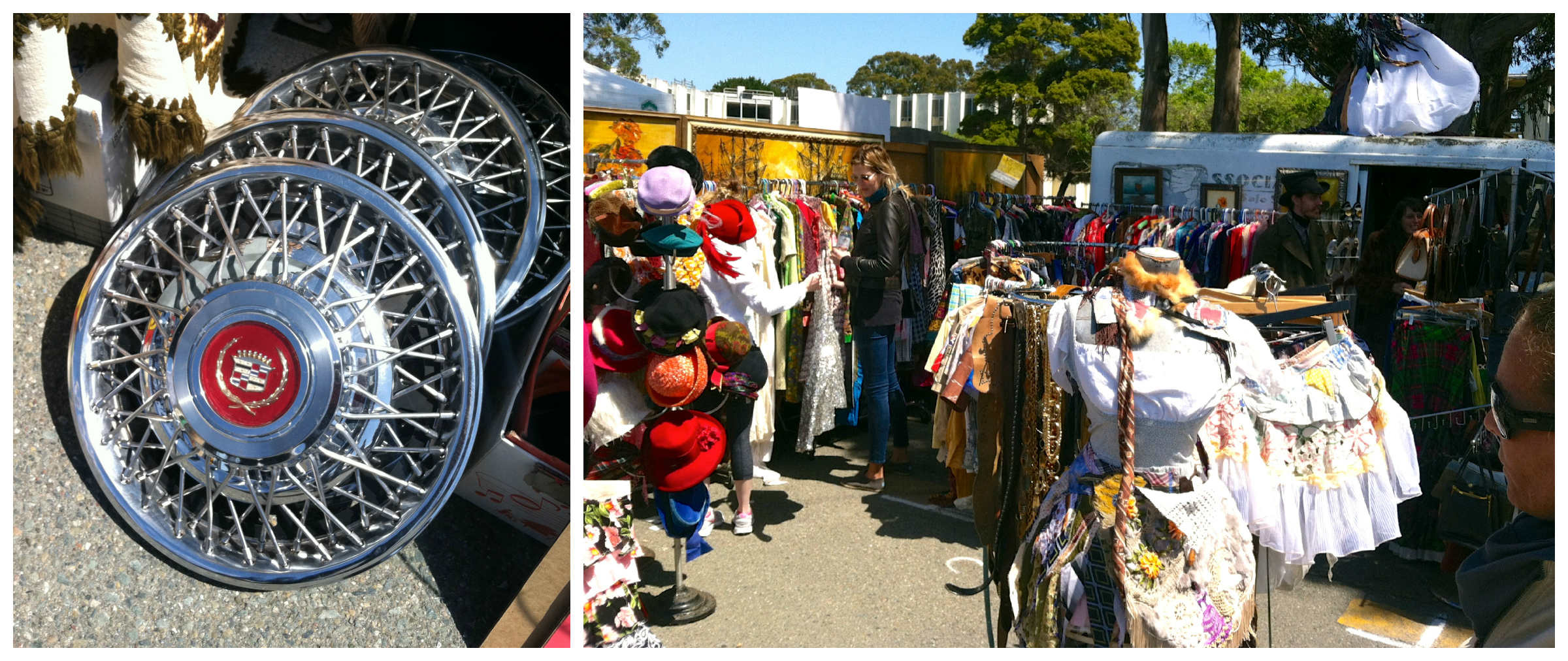 Saturday’s mission: power shopping. The once-a-month flea market on Treasure Island sounded intriguing, so we donned appropriate footwear, grabbed breakfast to go, and headed over the bridge. The flea market was a hodge-podge of junk, collectibles, antiques, and local art- and it felt like browsing the Museum of Crazy. There was so much to take in, wagging dogs everywhere, and the people-watching was incredible! I’d have snagged all sorts of vintage goodies if I lived close by, but instead, I took photos. Shocker.