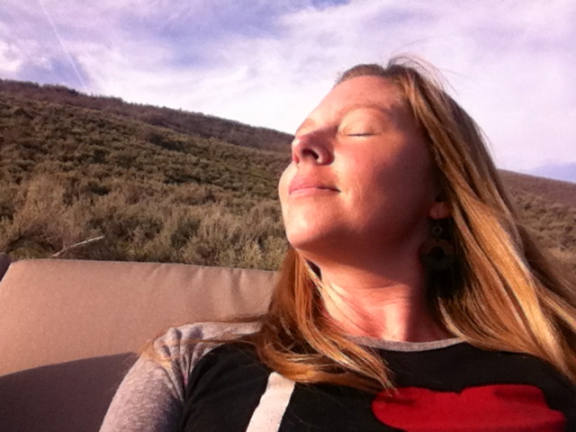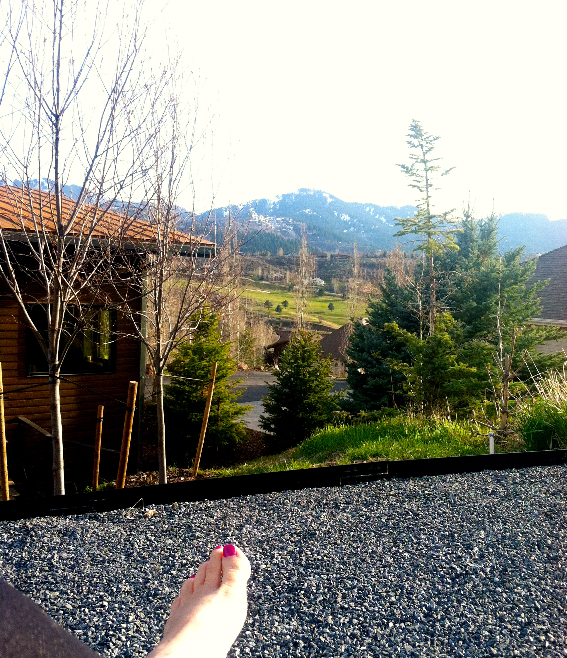 We were ready to start cookin’– but the sunshine was begging for a little time outside first. We have a new double chaise lounge thing in the backyard that converts into a couch, too. The weather has JUST been nice enough to set it up and bring out some colorful pillows! John tossed the tennis ball up and down the back hill while I soaked in the new-to-me view. It was a little preview of summertime happy hours. Look how green the hillside is already!