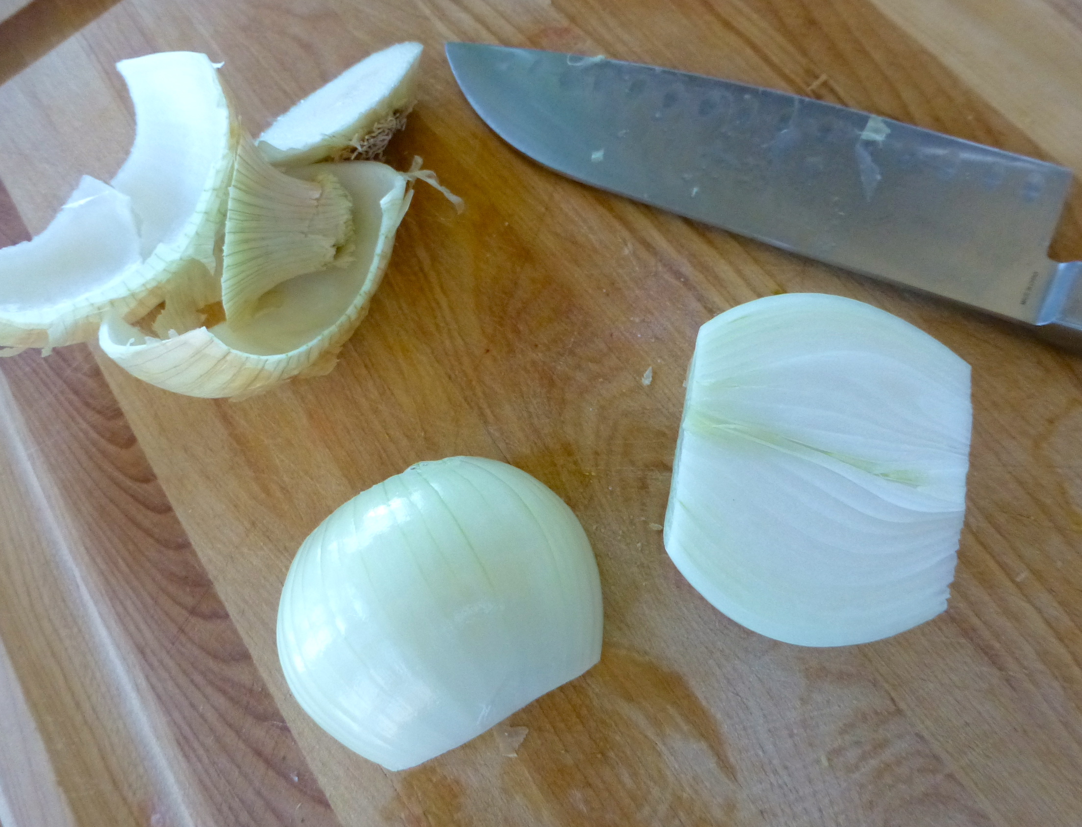 - 1 onion, ends cut off, peeled and halved