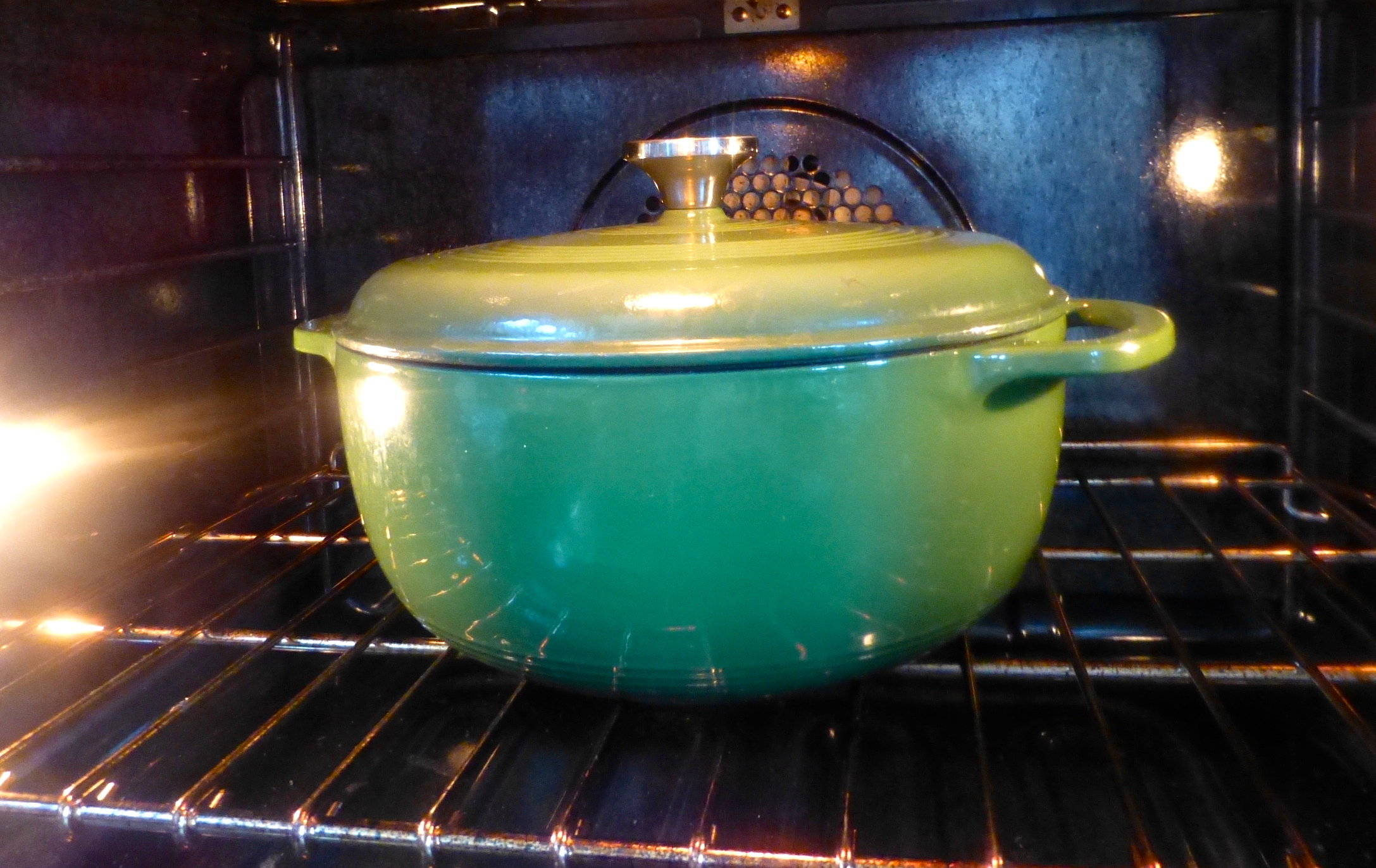 Once all of the ingredients were in the pot, I turned on the heat to medium-high brought it to a simmer. Then I put the lid on the pot and transferred the whole shebang to the oven, where some magic happened for about two hours.