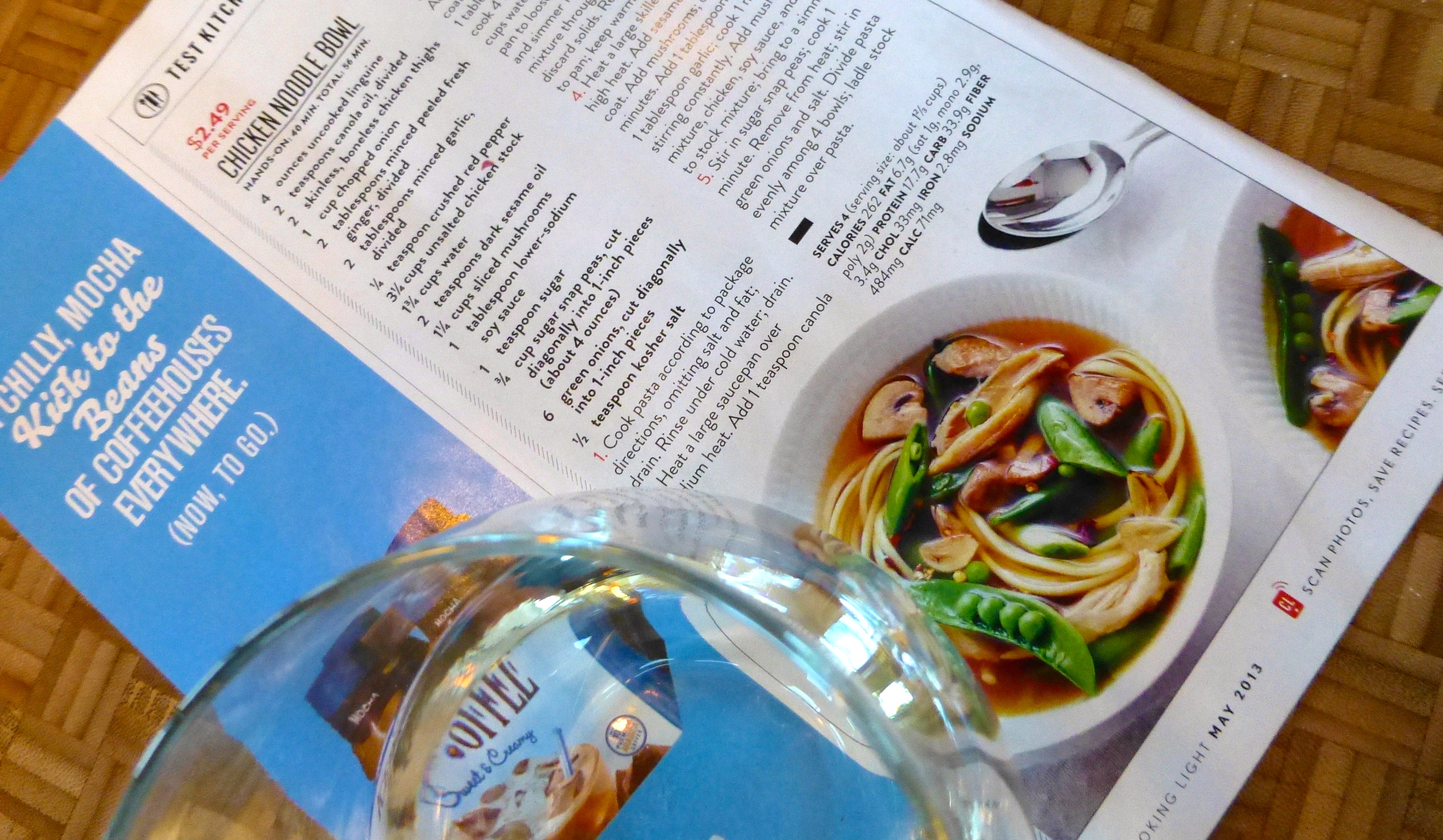 Something about the Chicken Noodle Bowl seemed fresh and light. This wasn’t stick-to-your-ribs kind of soup. It sounded warm weather-appropriate. Last week, we gave the grill a break. I added more veggies to the pile of ingredients called for in the recipe and dove right in!
